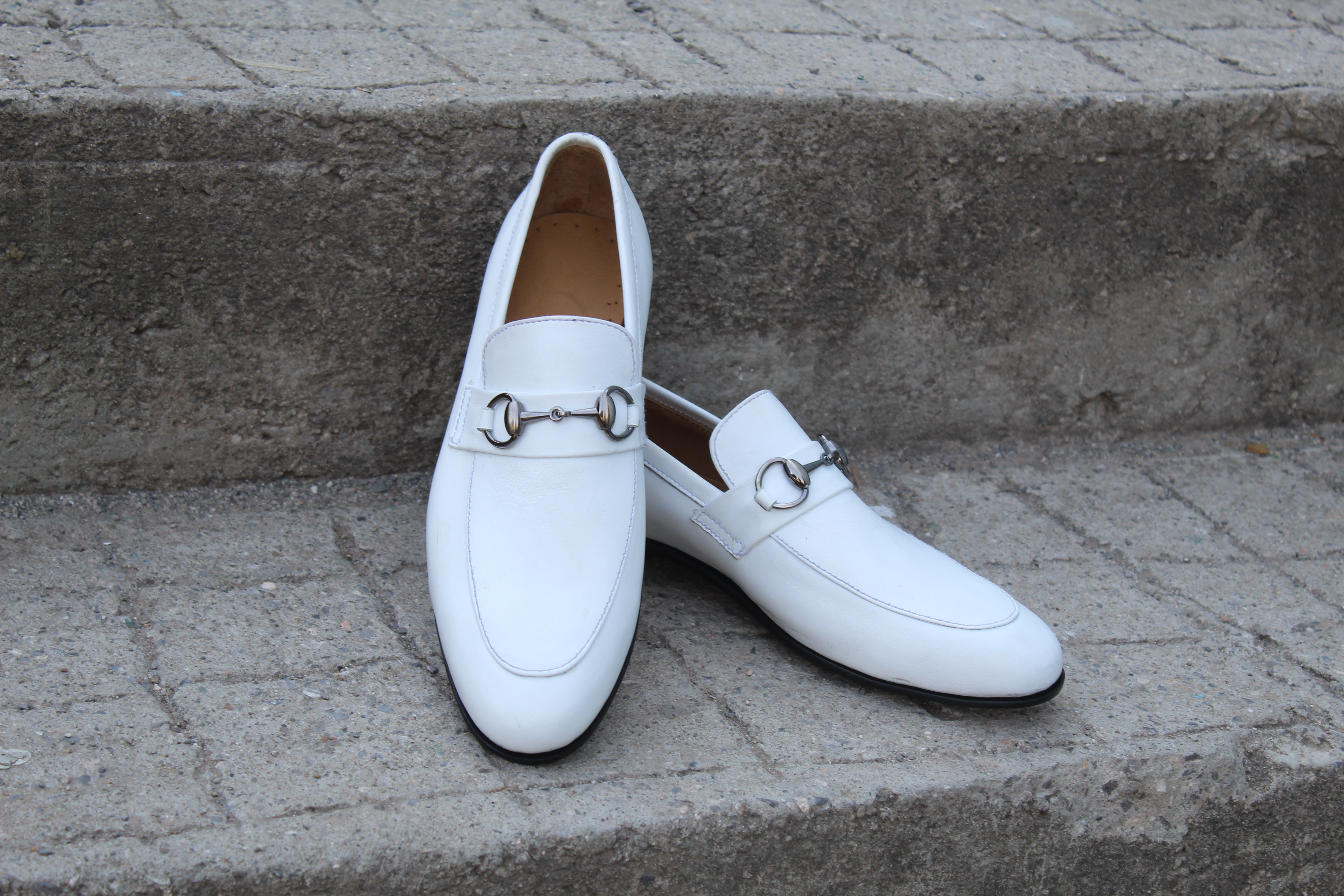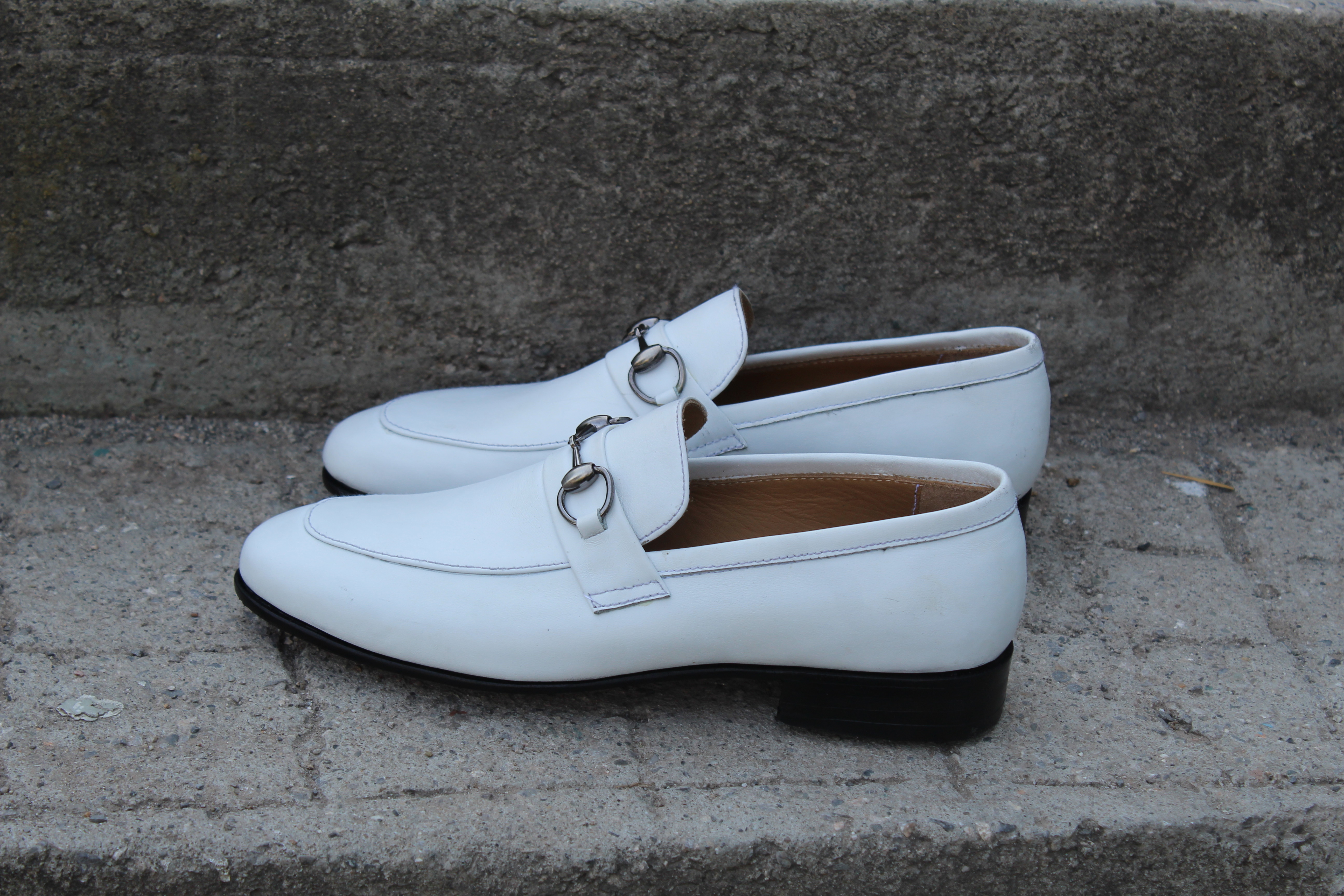 Crafted Leather Classic White Leather Horsebit Moccasin Loafers Dress Shoes
