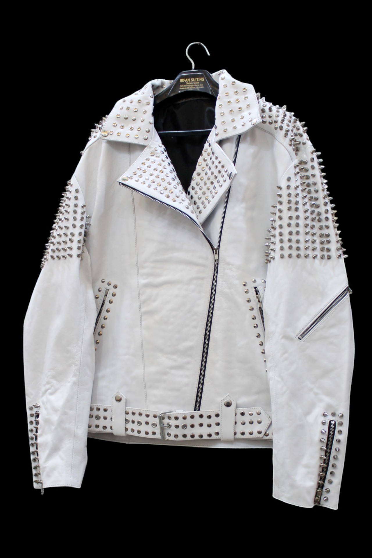 Crafted Leather Handmade White Color Biker Real Leather Studded Jackets