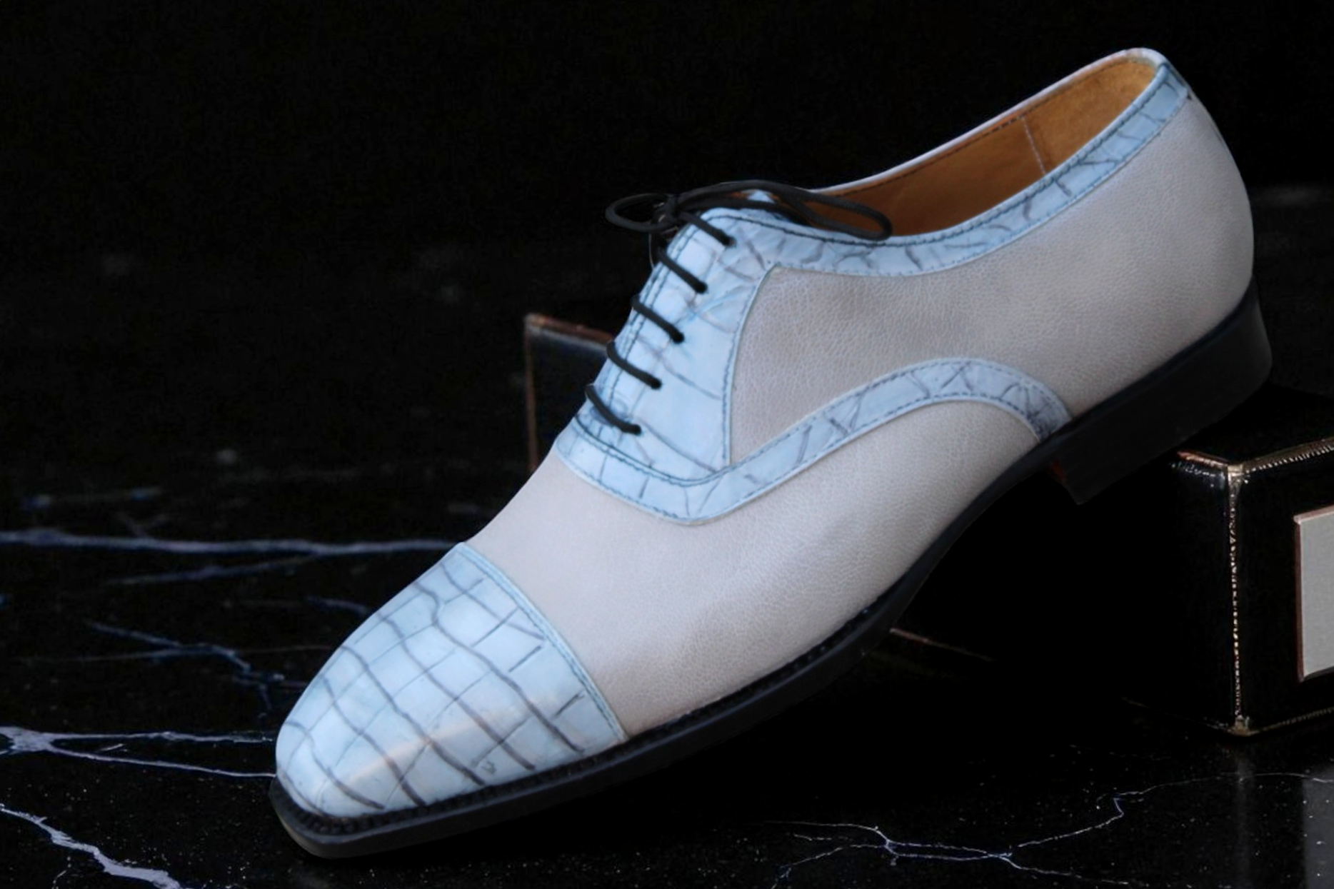Upper: High Quality Calf-Skin Leather ( Crocodile Texture )