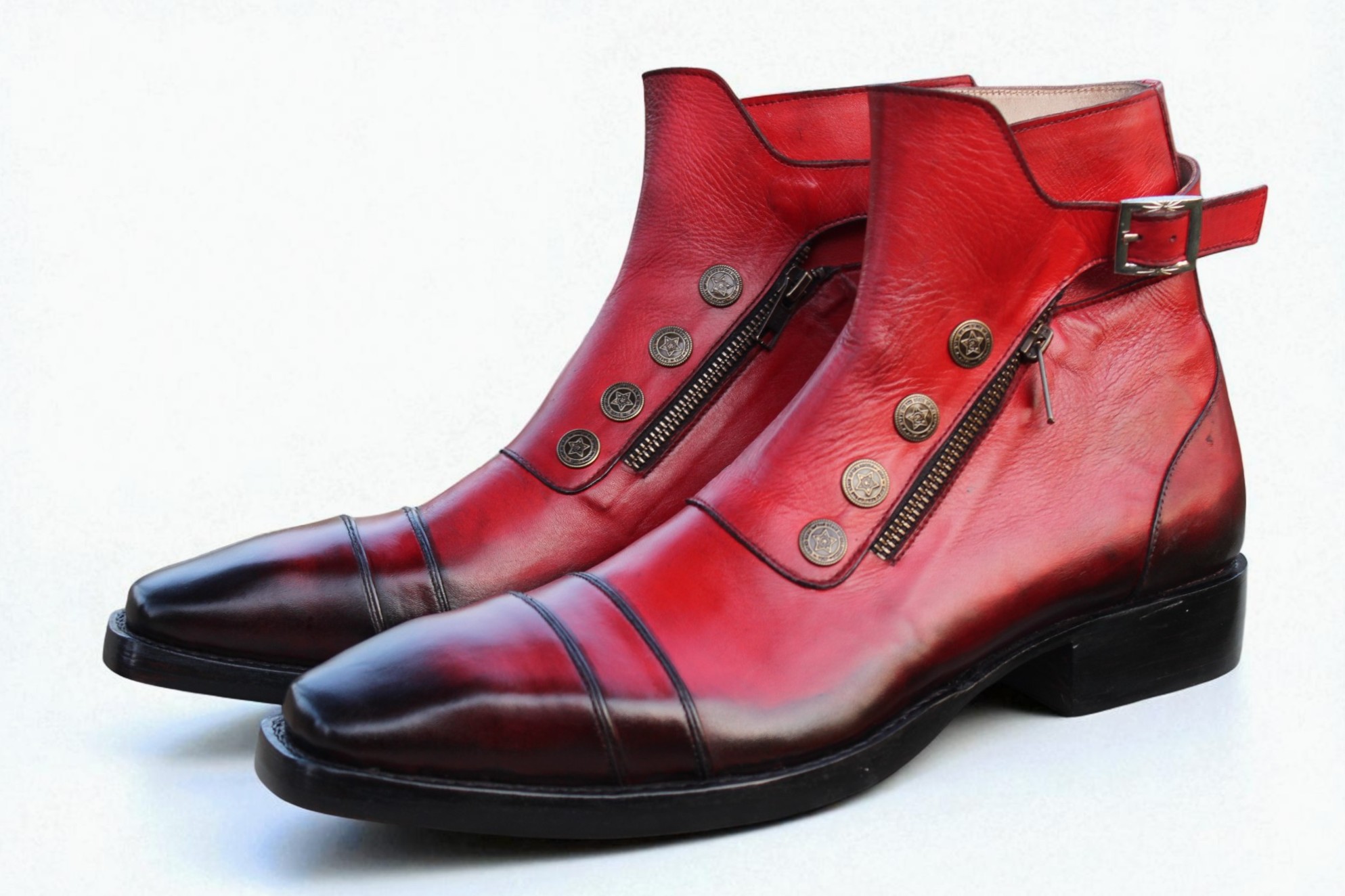 Crafted Leather Classic Red Leather Buckle Jodhpur Boot with Zipper and Button