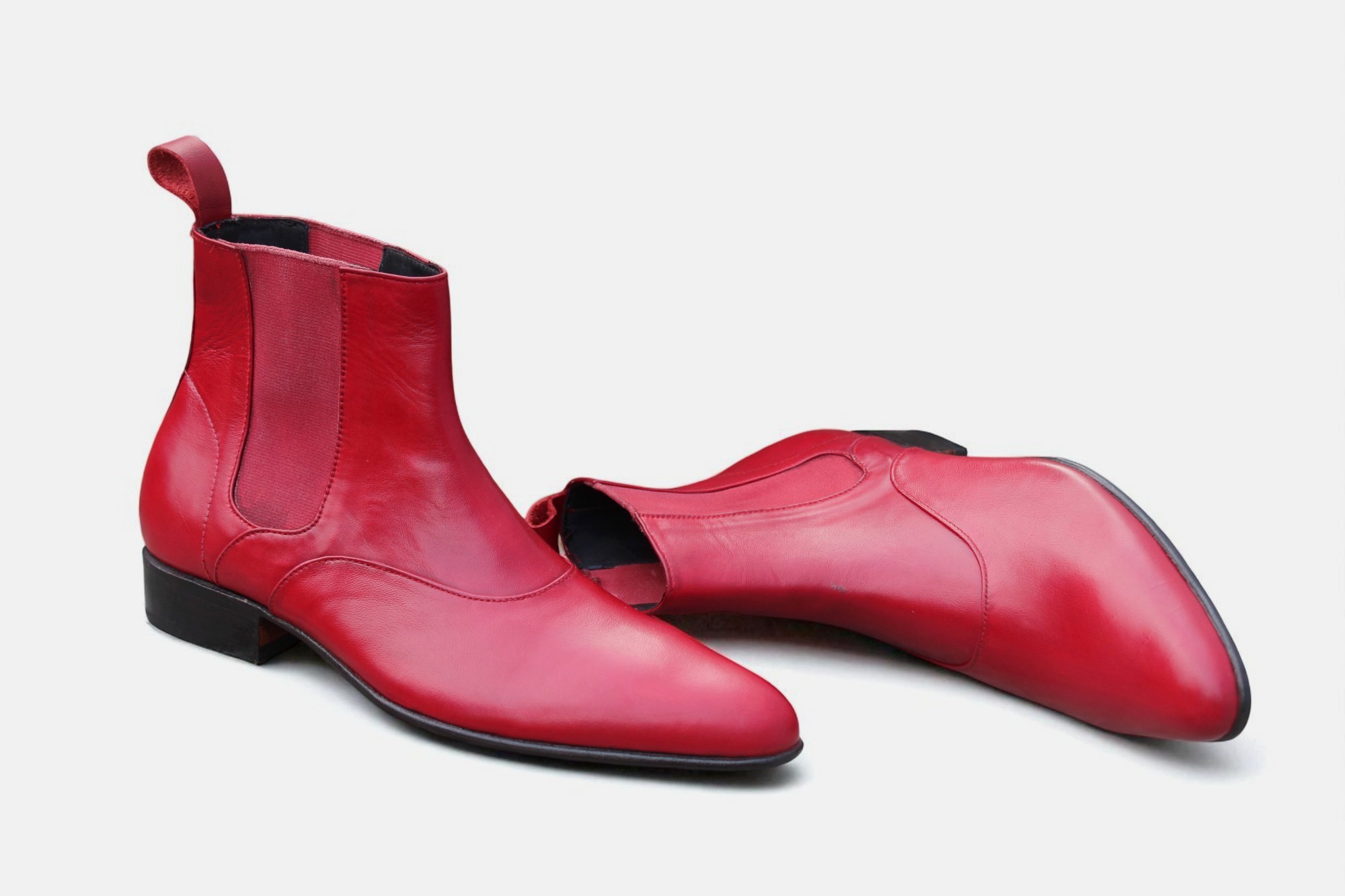 Crafted Leather Classic Red Leather Handmade Mens Fashion Chelsea Dress Boot