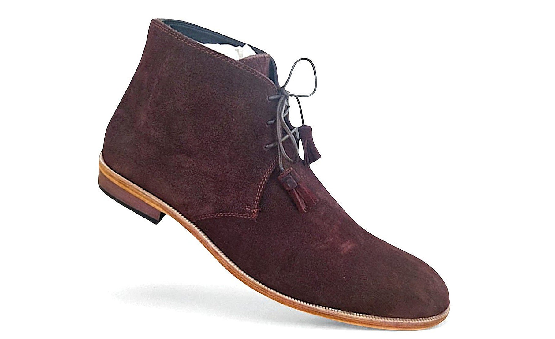 Crafted Leather Men Classic Maroon Suede Leather Chukka Boot