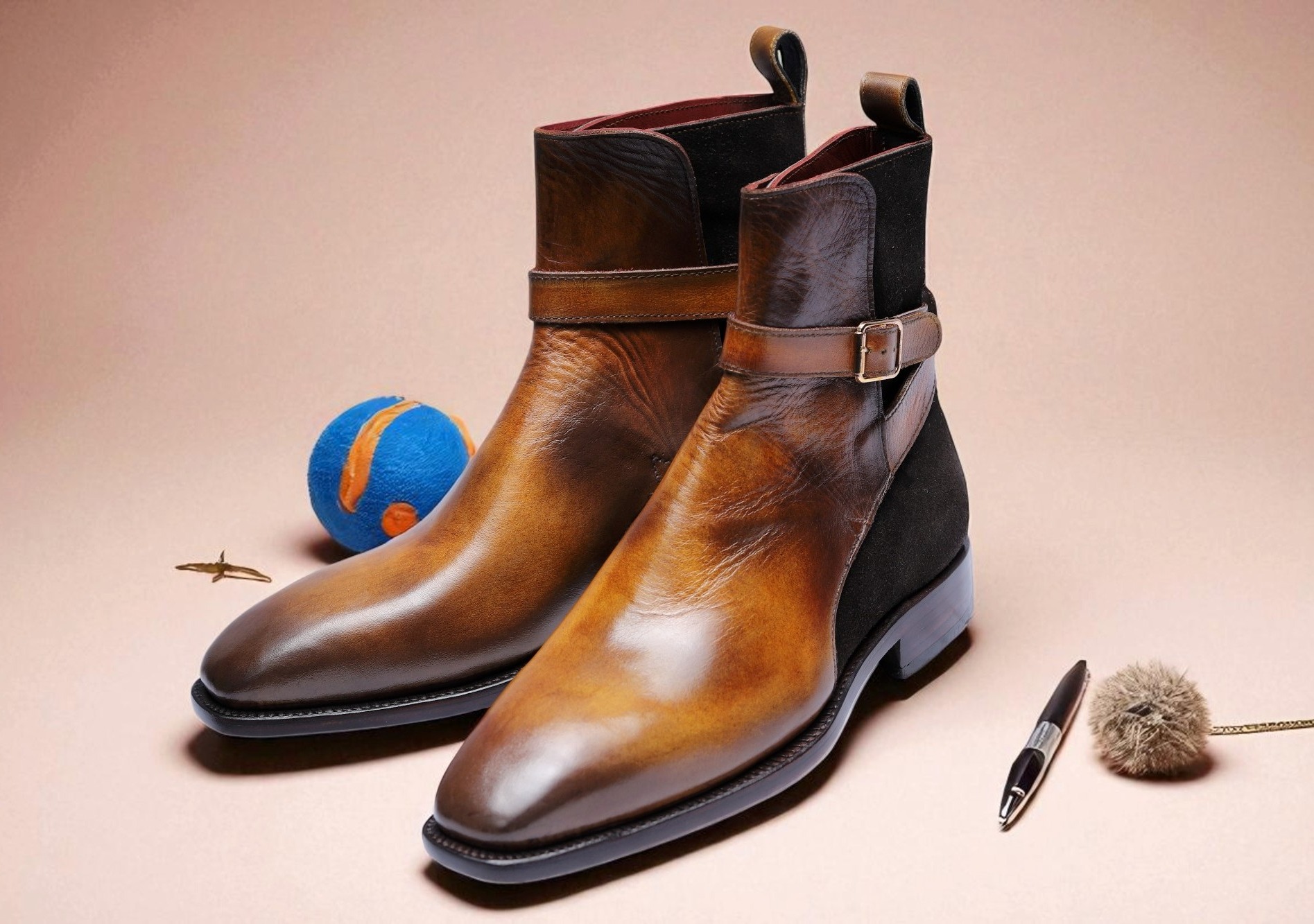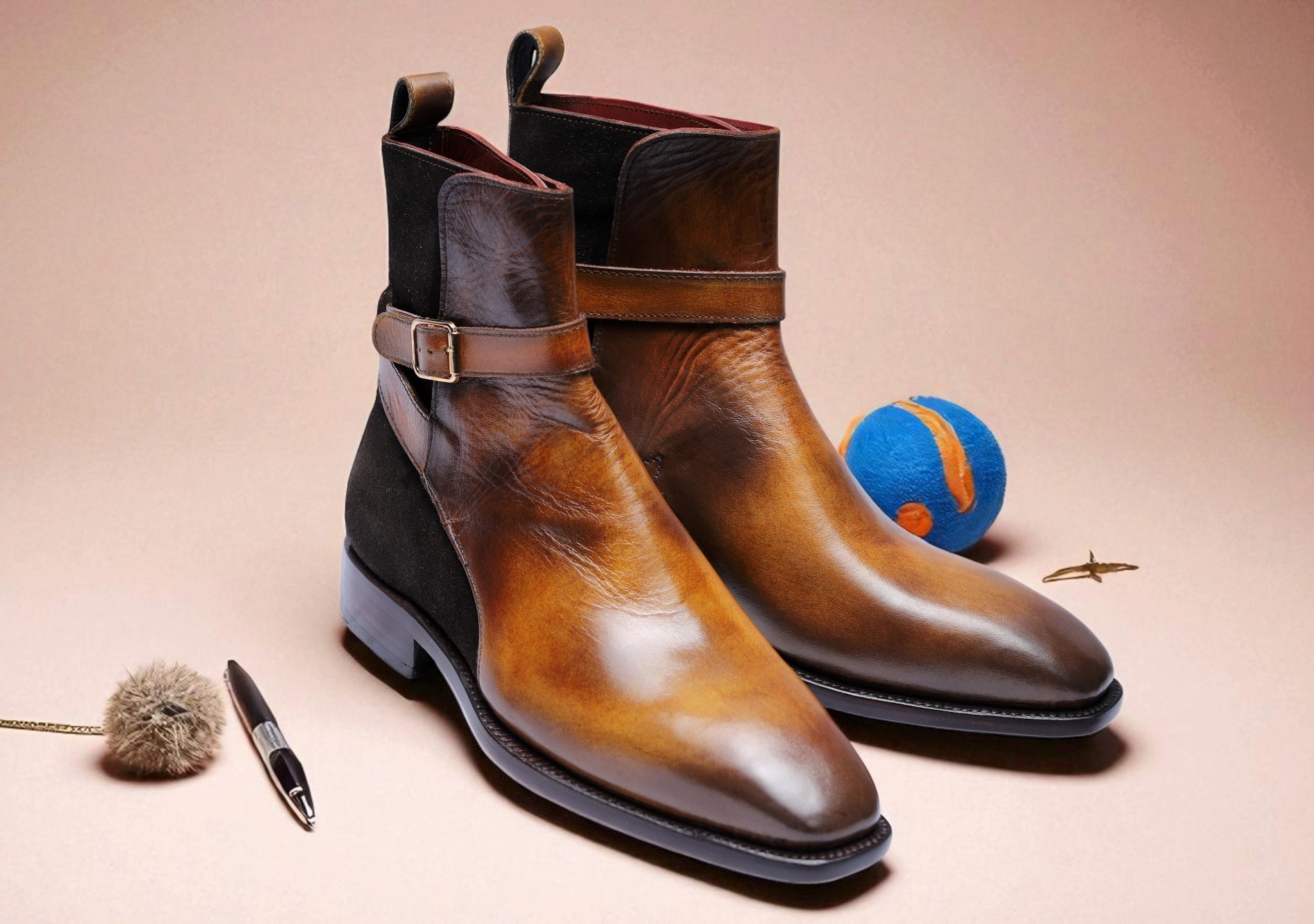 Crafted Leather Classic Men Brown Patina Suede Leather Jodhpur Buckle Strap Boot