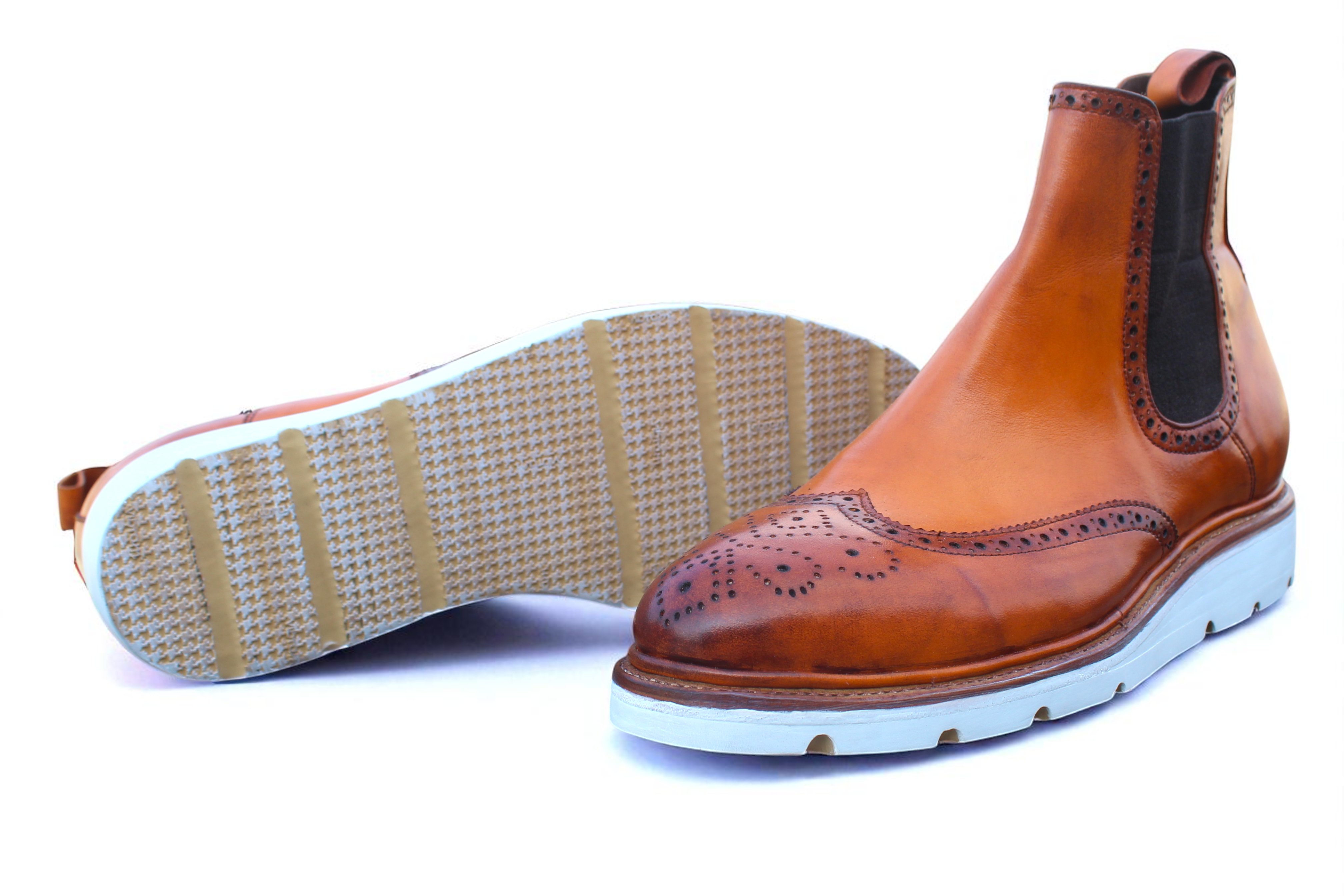 Crafted Leather Classic Chelsea Tan Leather Rubber Sole Dress Boots