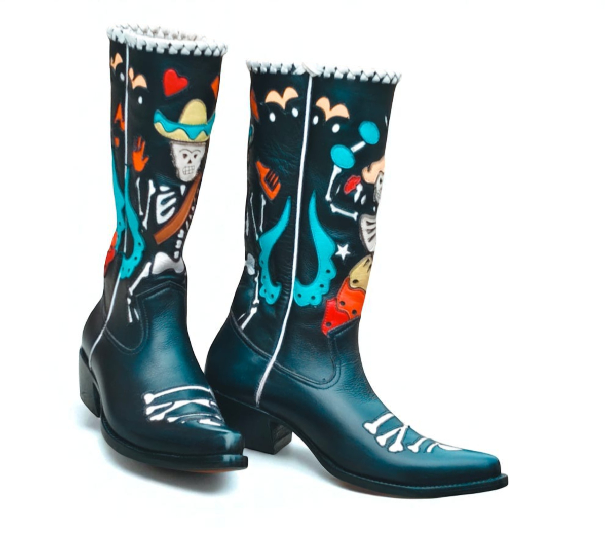 Crafted Leather Classic Black Leather Fancy Cowboy Boots