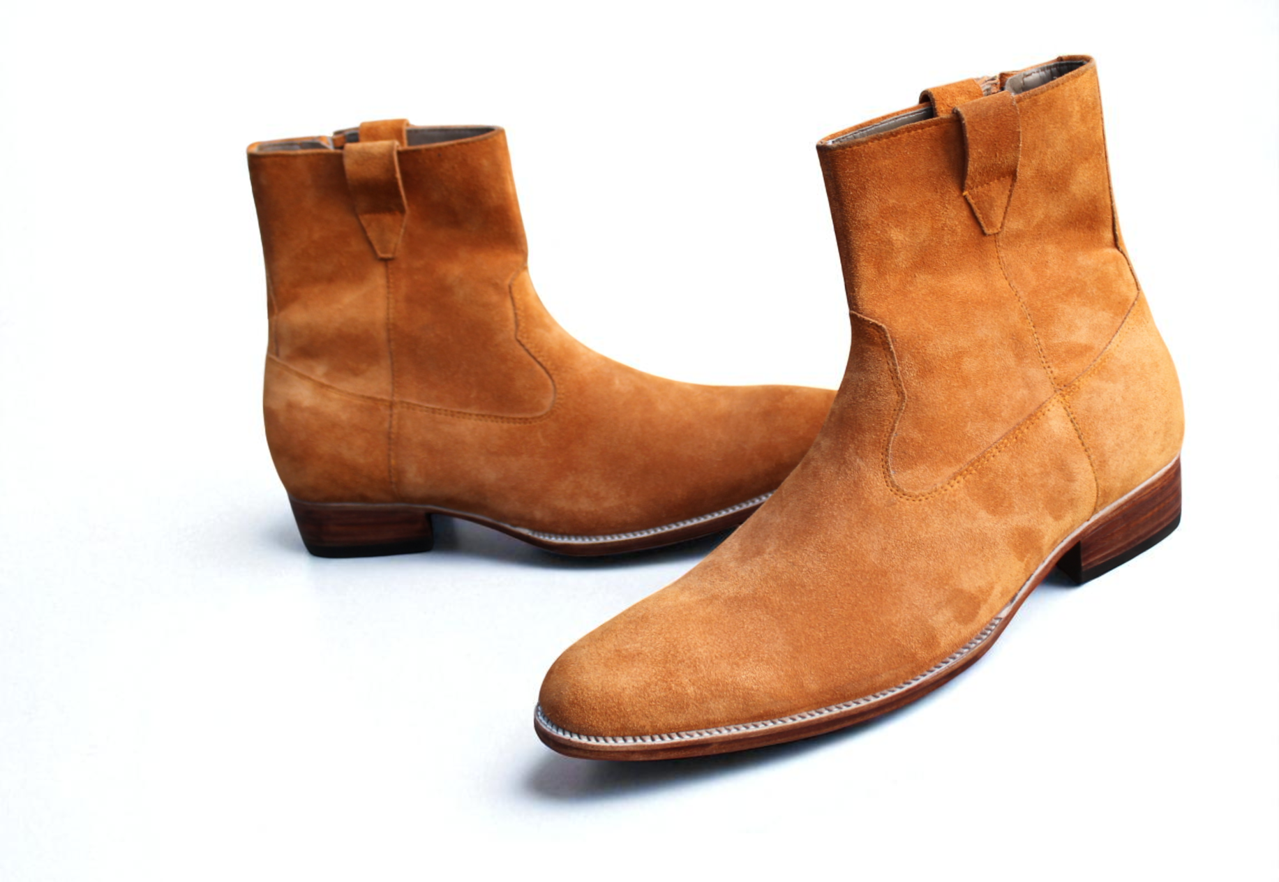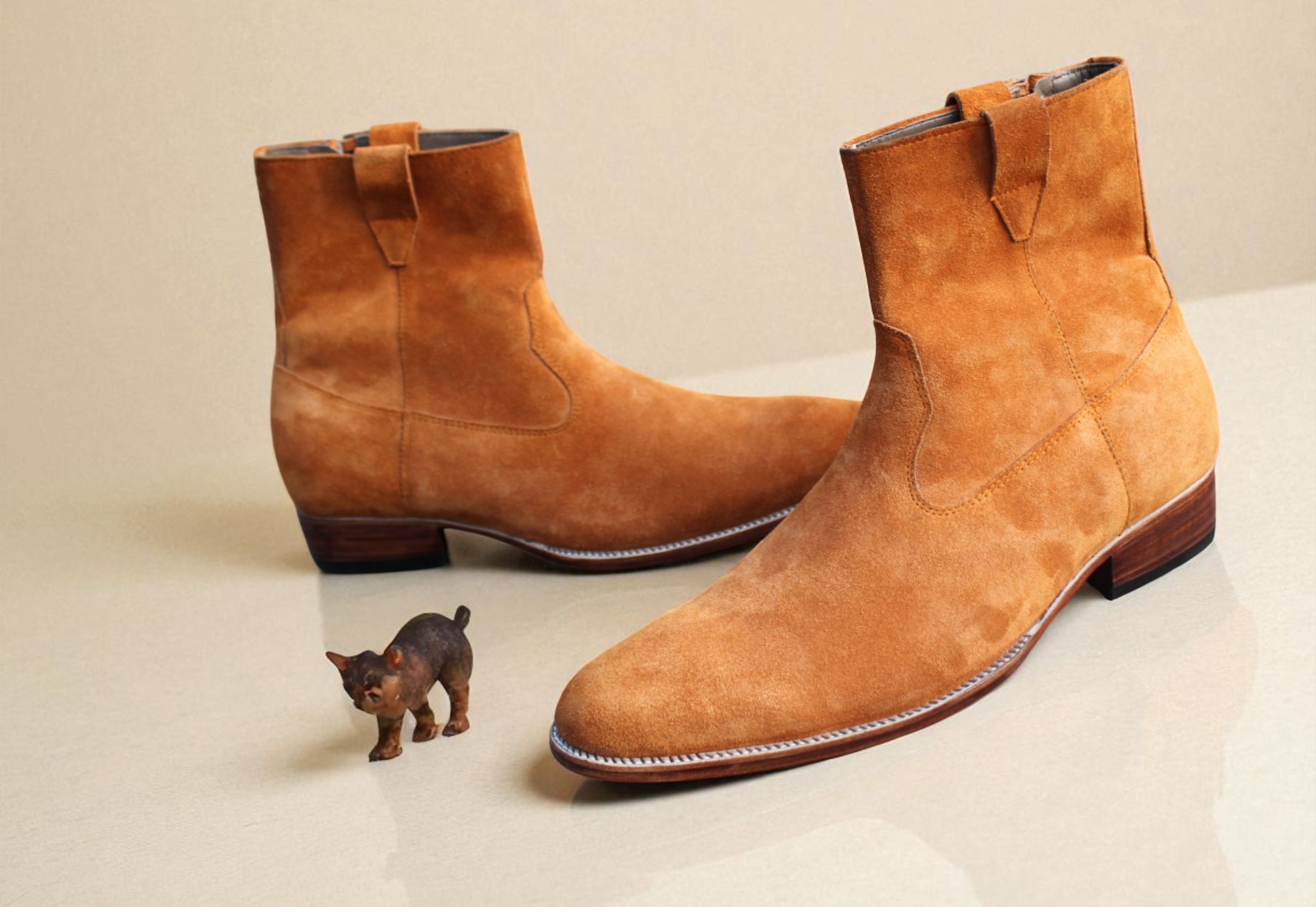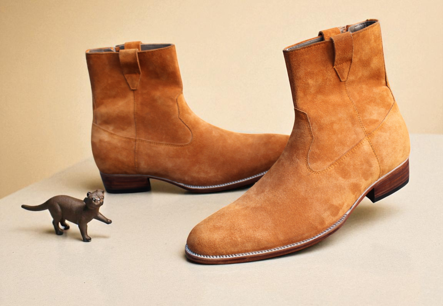 Crafted Leather Classic Handmade Tan Suede Leather Side Zipper Jodhpur Boot