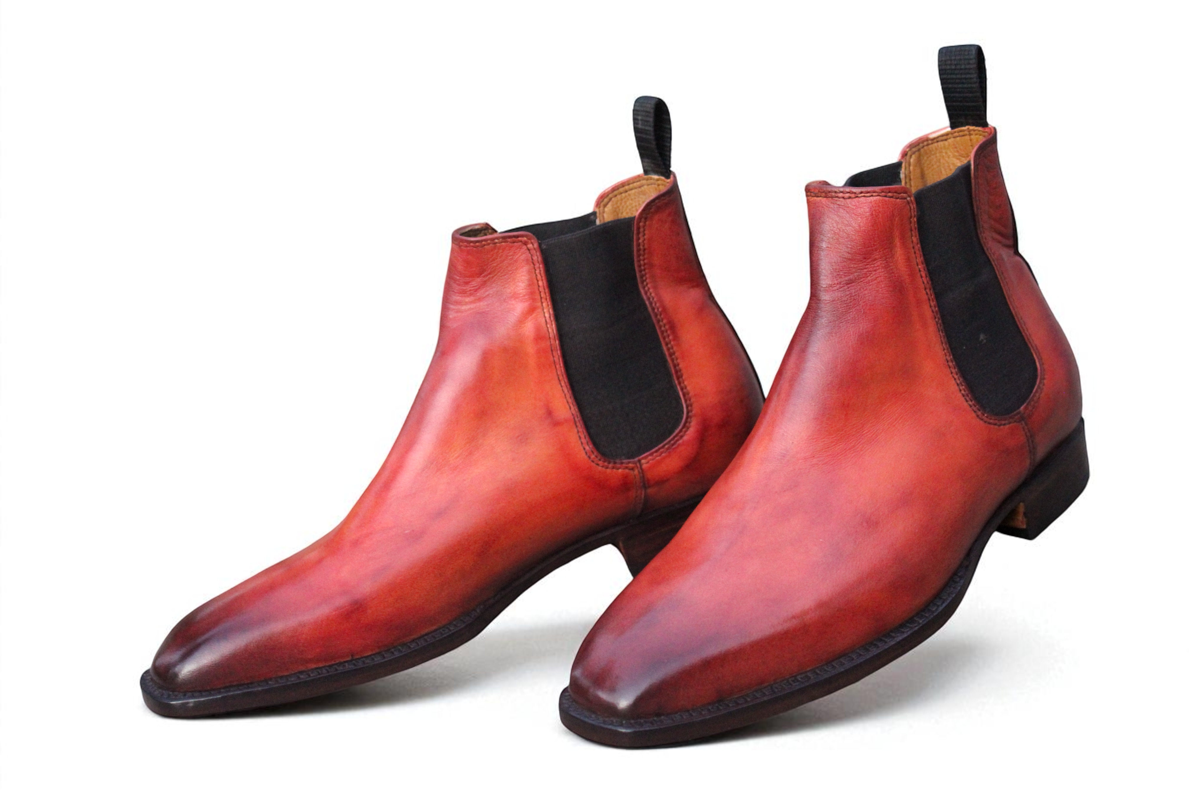 Crafted Leather Handmade Men Brown Leather Chelsea Boot
