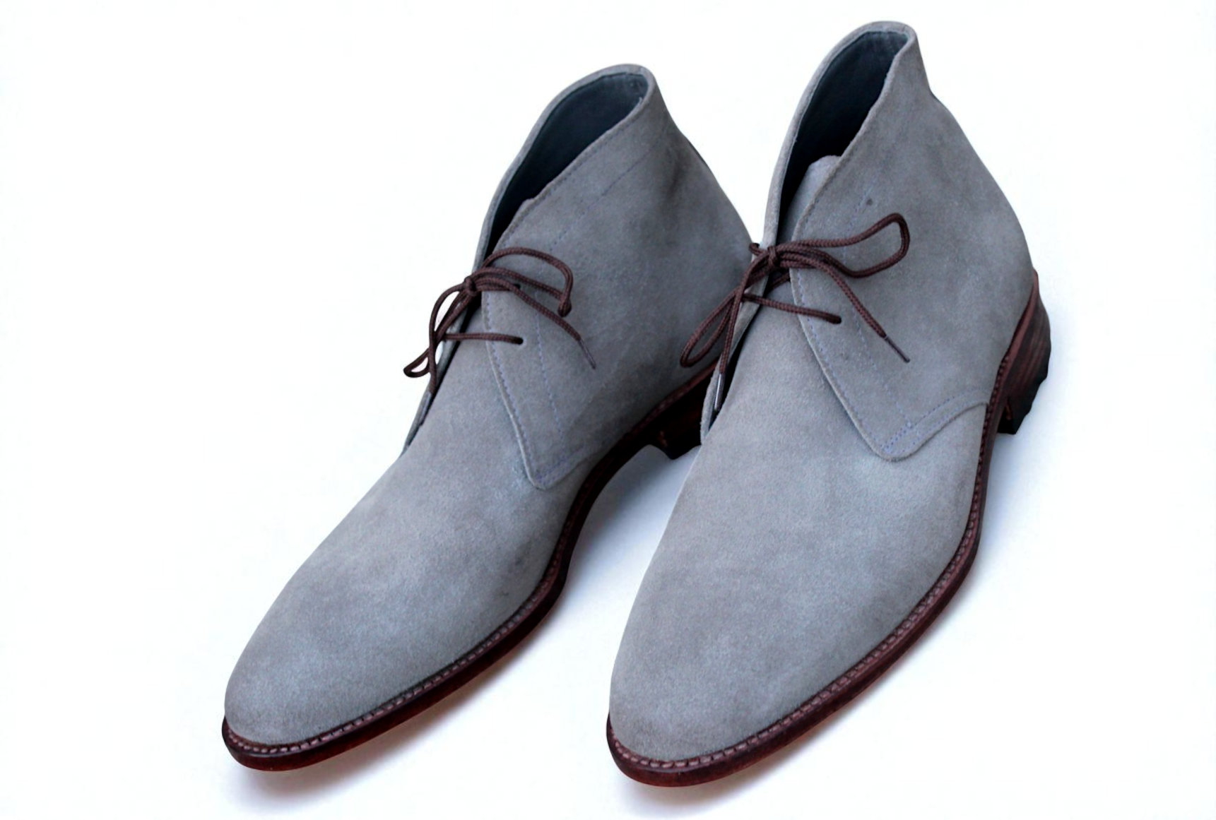 Crafted Leather Classic Men Gray Suede Leather Chukka Boot