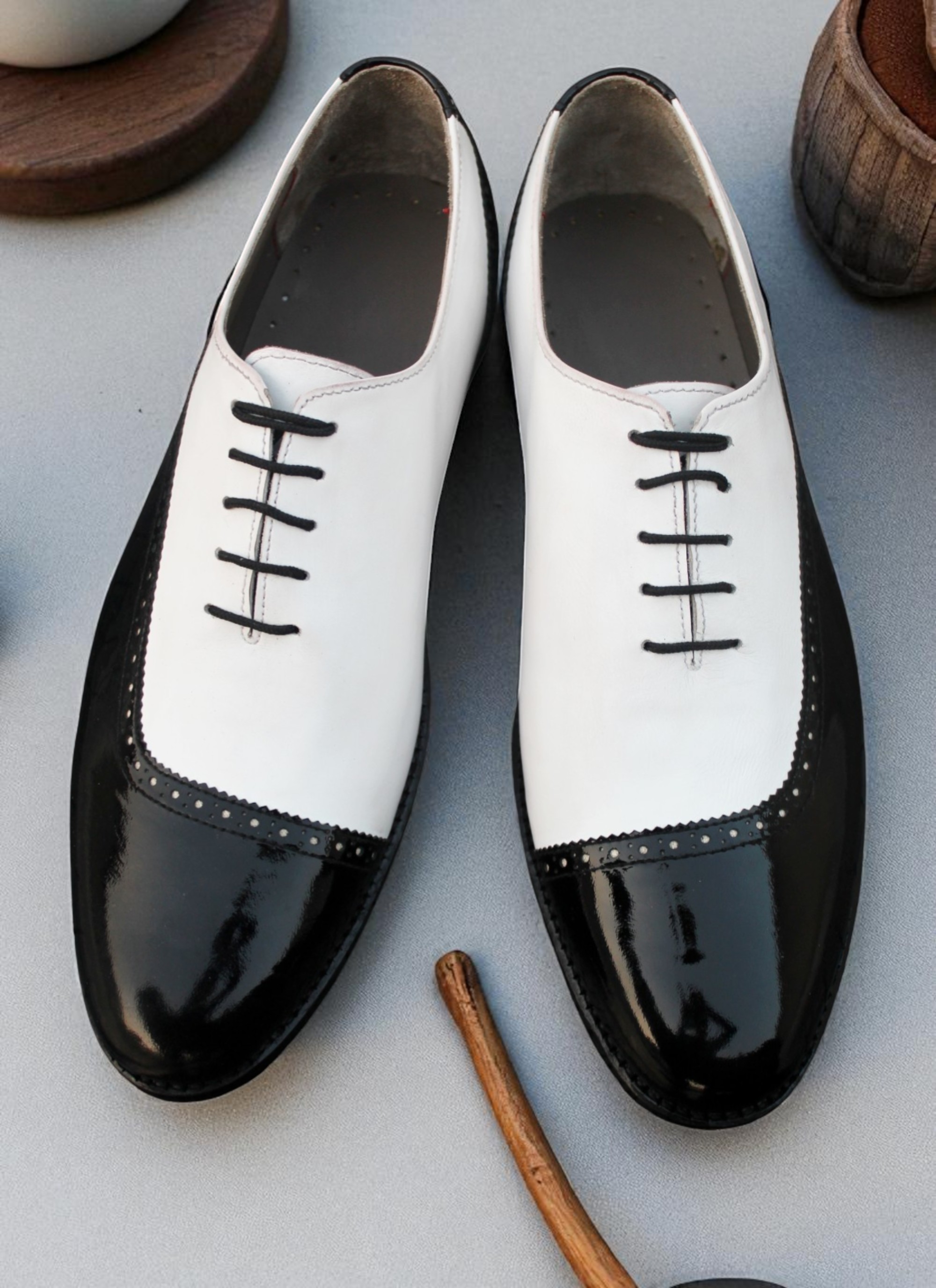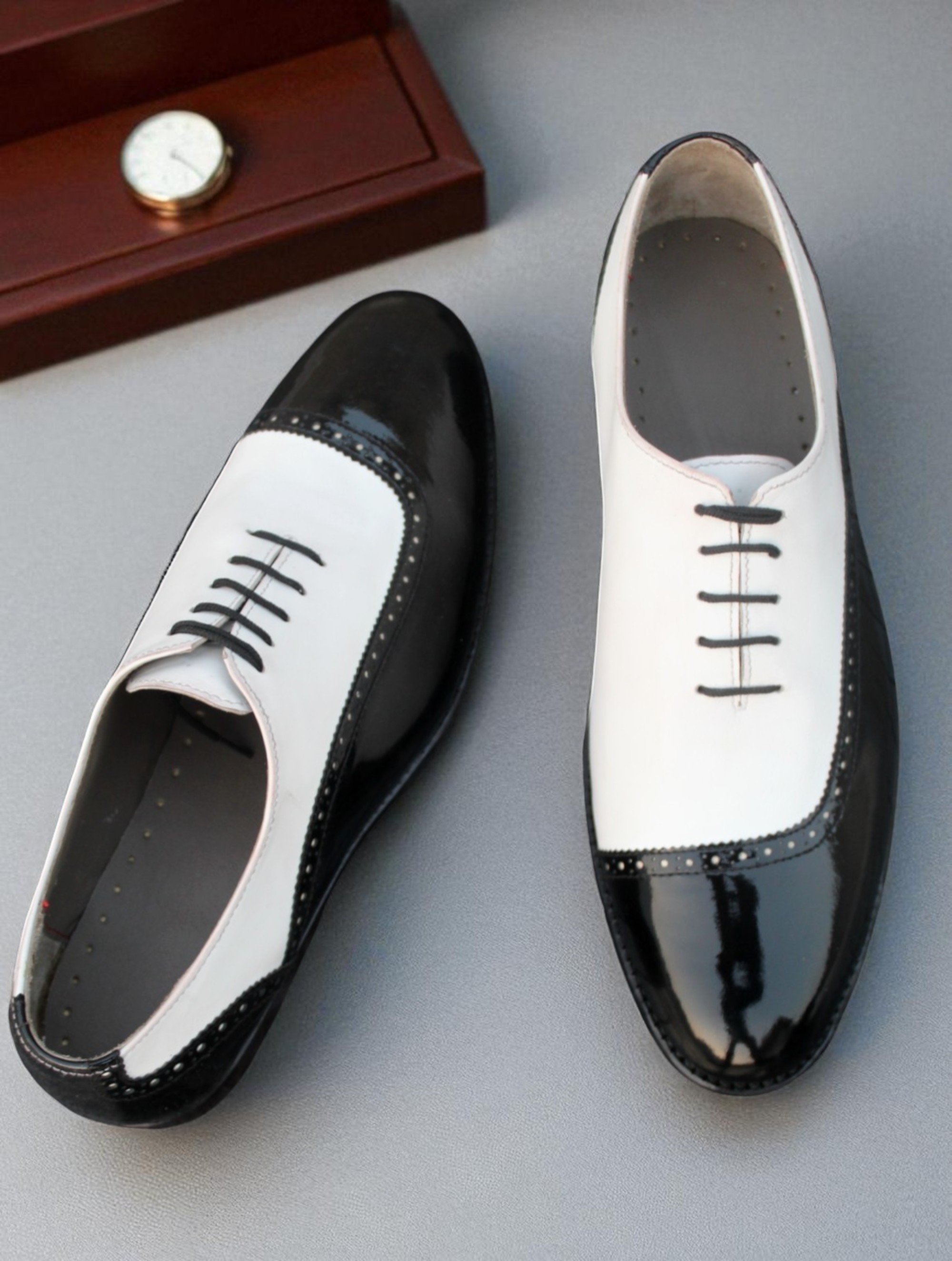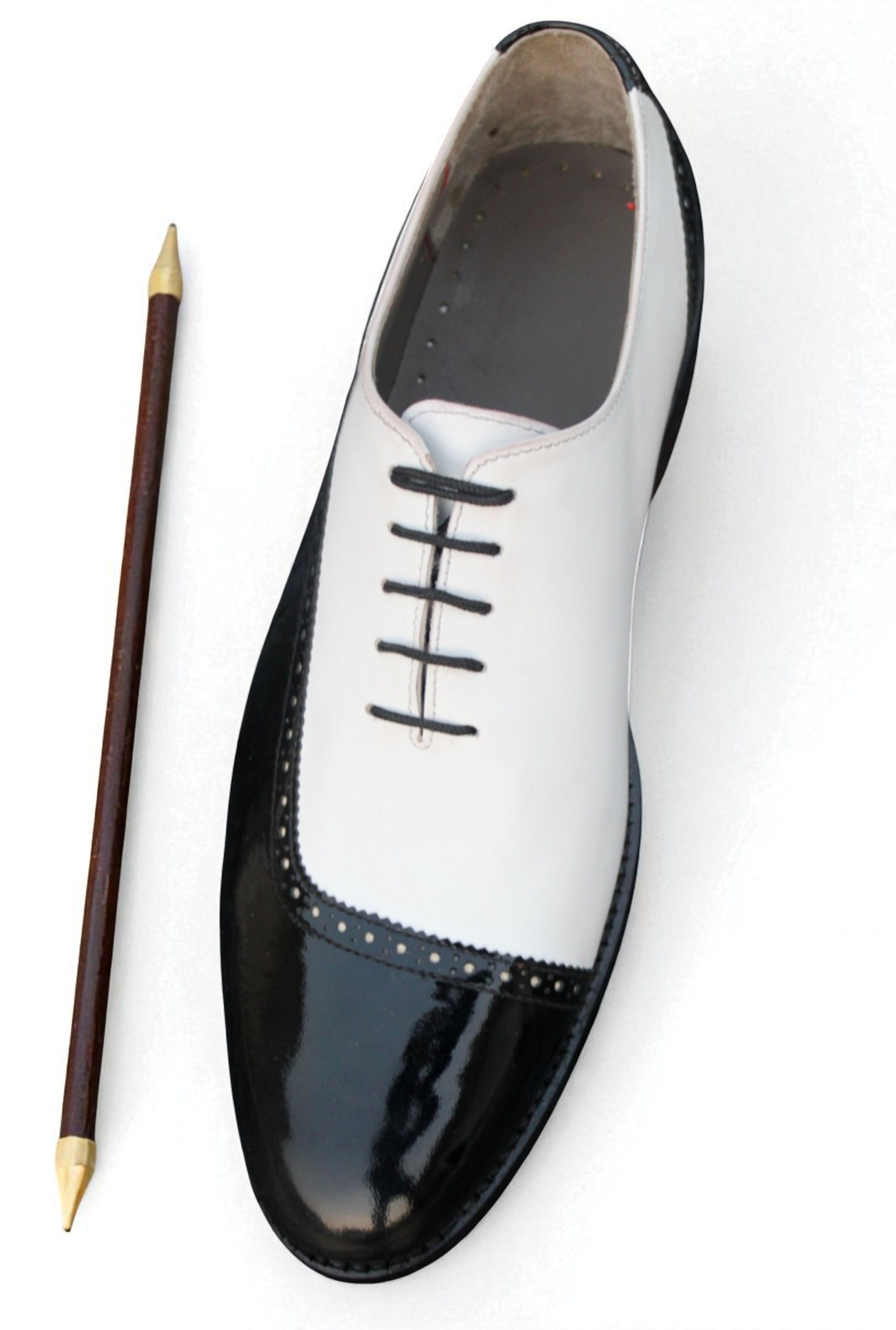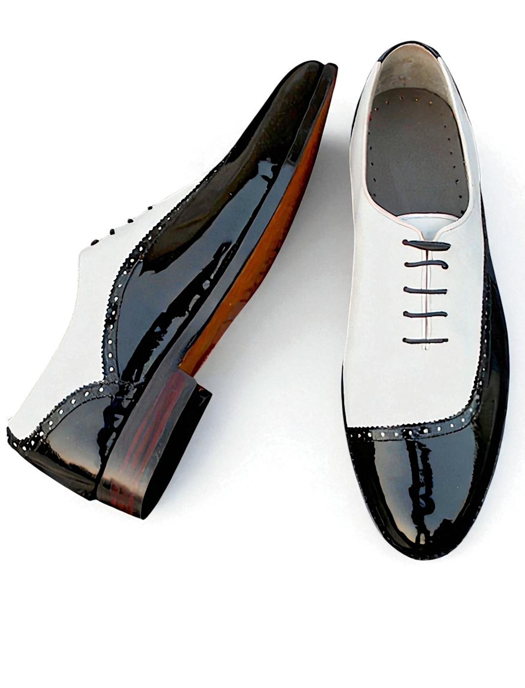 Crafted Leather Stunning Men Black Patent White Leather Dress Shoes