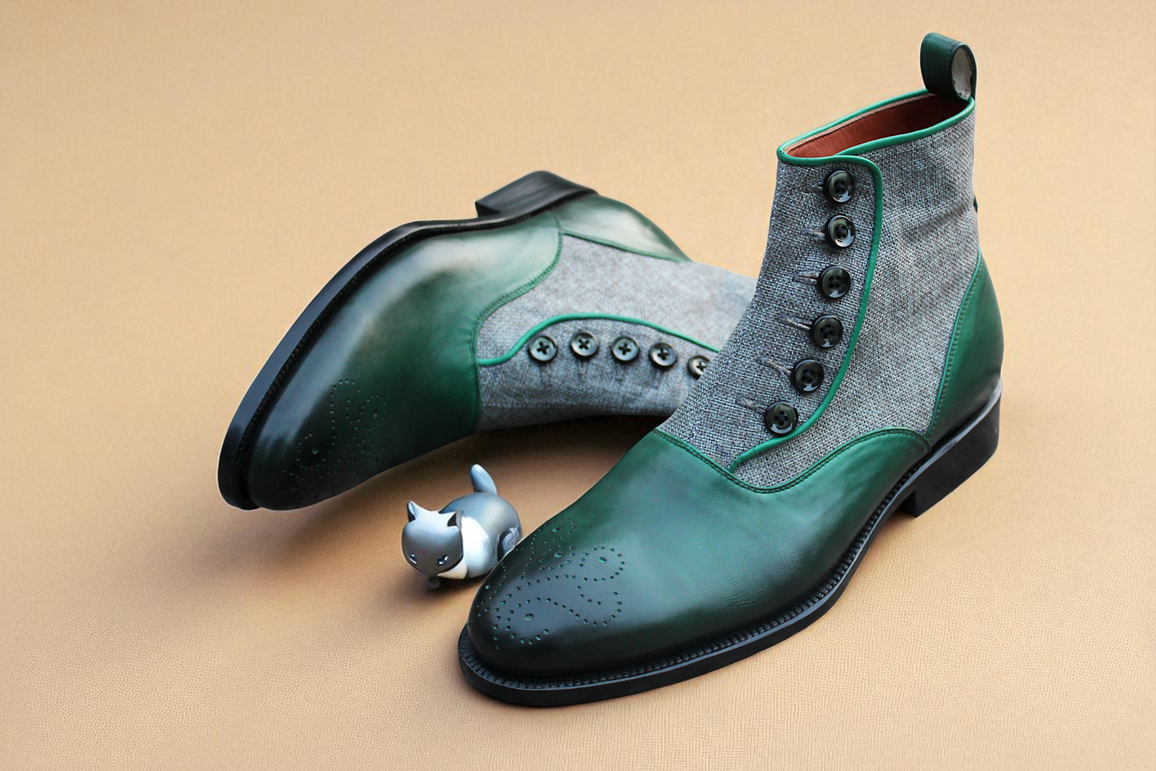 Inner: Soft Leather Sole: Leather Gender : Male Heel: Leather Color: Green Style: Button Boot Lining Soft Calf Leather Lining Totally Hand stitched Manufacturing time 7-10 business days If you can’t find your Size/Colorjust send us message we will make for you.
