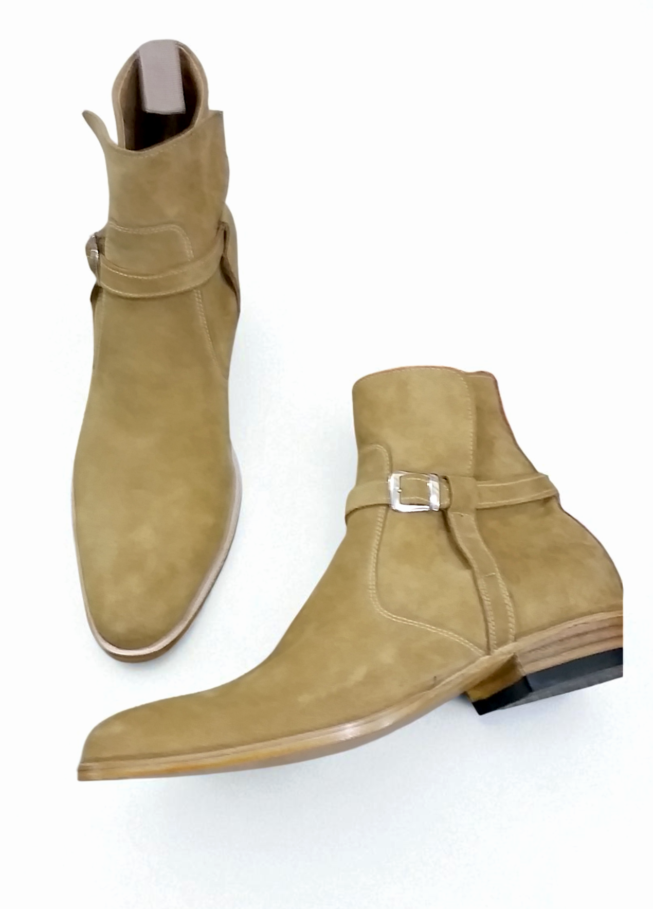 Crafted Leather New Mens Beige Suede Leather Jodhpur Buckle Strap Boot