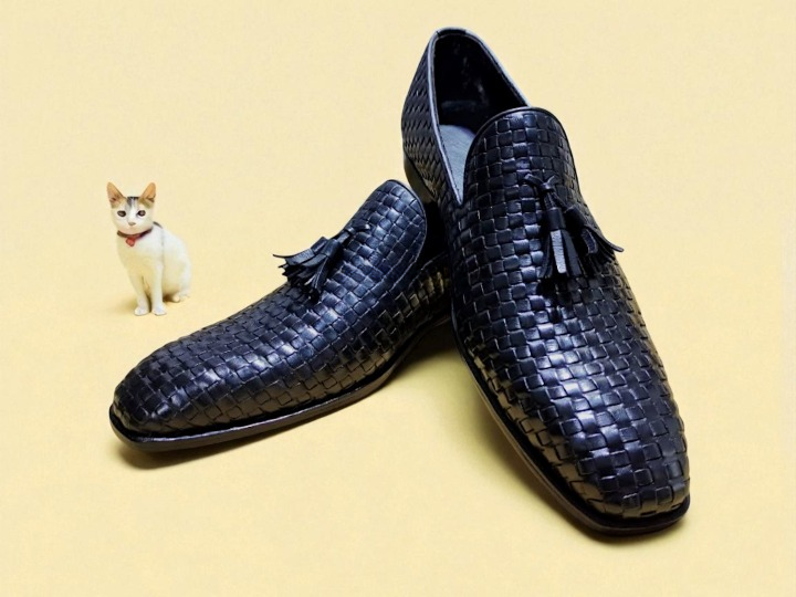 Crafted Leather Classic Men Black Woven Leather Tassel Loafers Dress Shoes