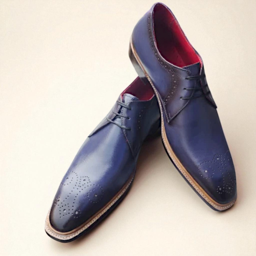 Inner: Soft Leather Sole: Leather Gender : Male Heel: Leather Color: Blue Style: Dress Shoes Lining Soft Calf Leather Lining Totally Hand stitched Manufacturing time 7-10 business days If you can’t find your Size/Colorjust send us message we will make for you.