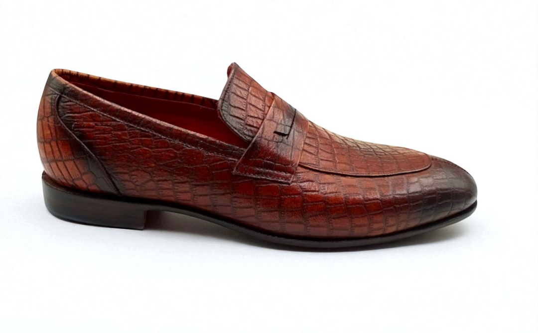 Crafted Leather Classic Brown Crocodile Leather Moccasin Loafers Dress Shoes