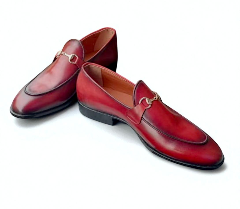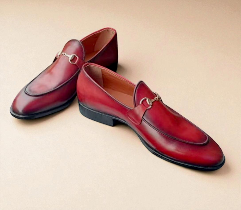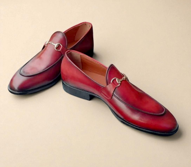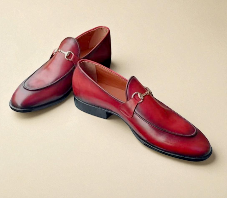 Crafted Leather Classic Men Red Leather Moccasin Horsebit Loafers Dress Shoes