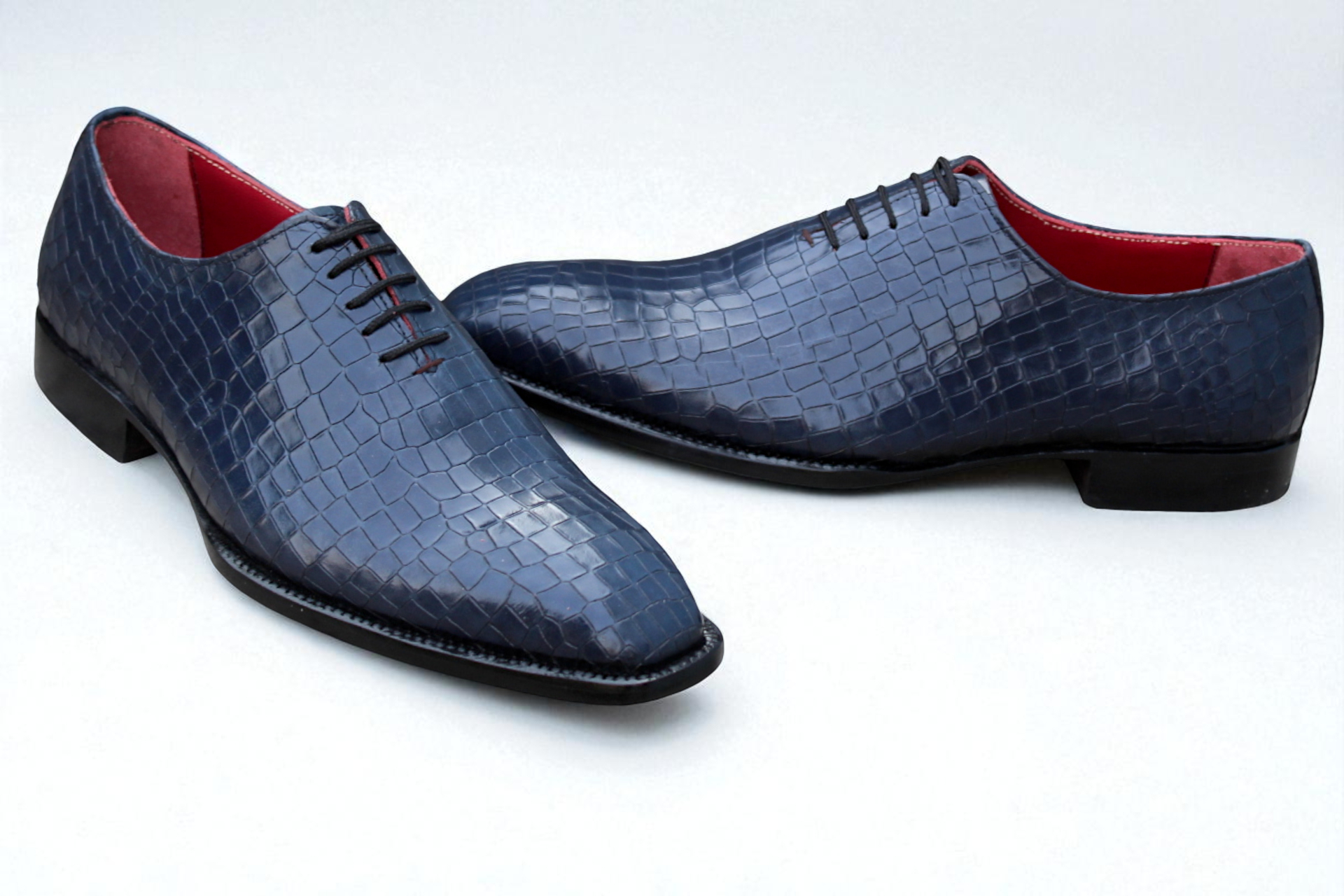 Crafted Leather Dress Shoes Men Classic Blue Crocodile/Alligator Oxford