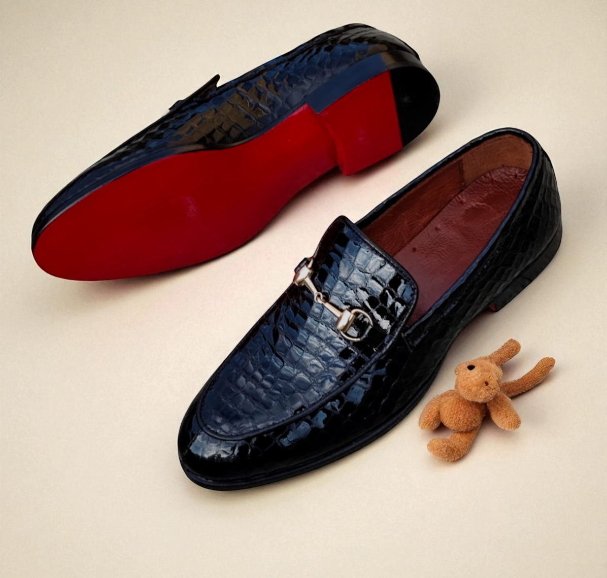 Crafted Leather Classic Handmade Black Crocodile/Alligator Moccasin Loafers Dress Shoes