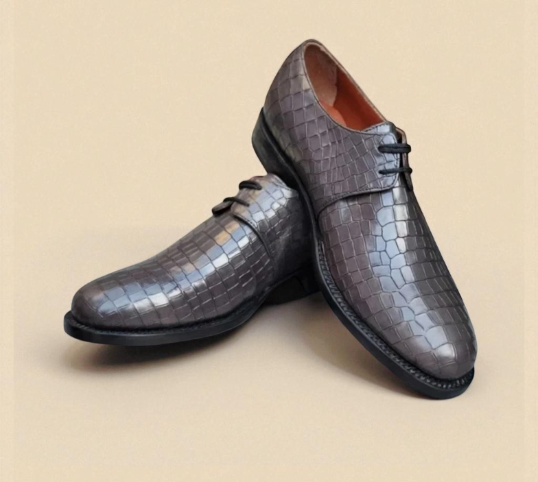 Crafted Leather Classic Gray Crocodile/Alligator Oxford Dress Shoes