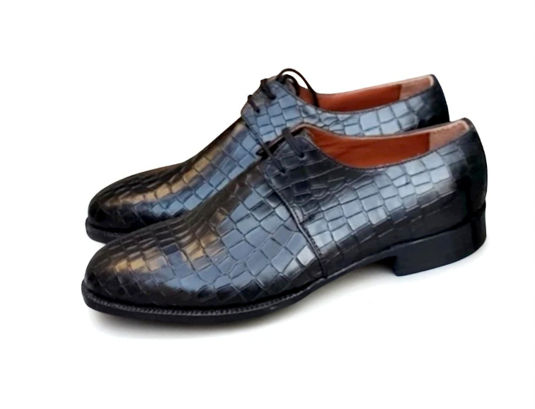 Crafted Leather Classic Men Black Crocodile Oxford Lace up Alligator Dress Shoes