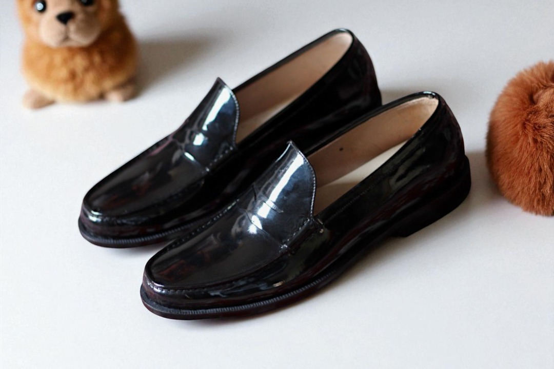 Crafted Leather Classic Men Black Patent Leather Moccasin Loafers Dress Shoes