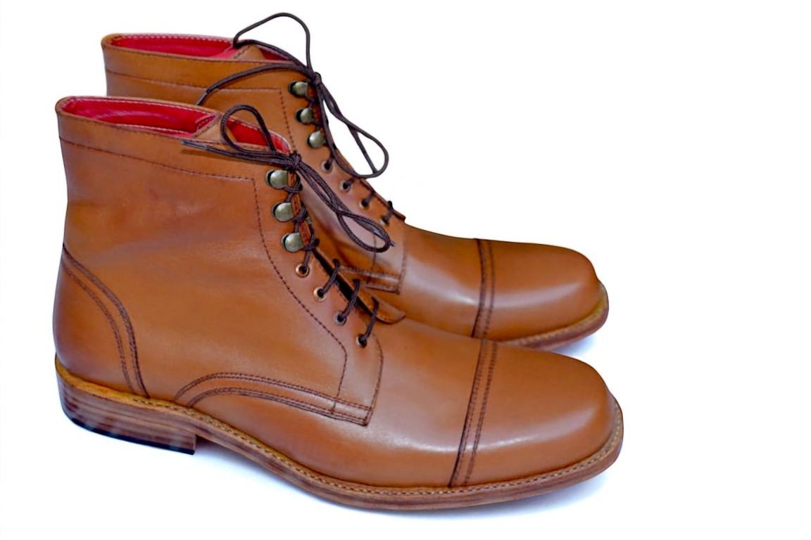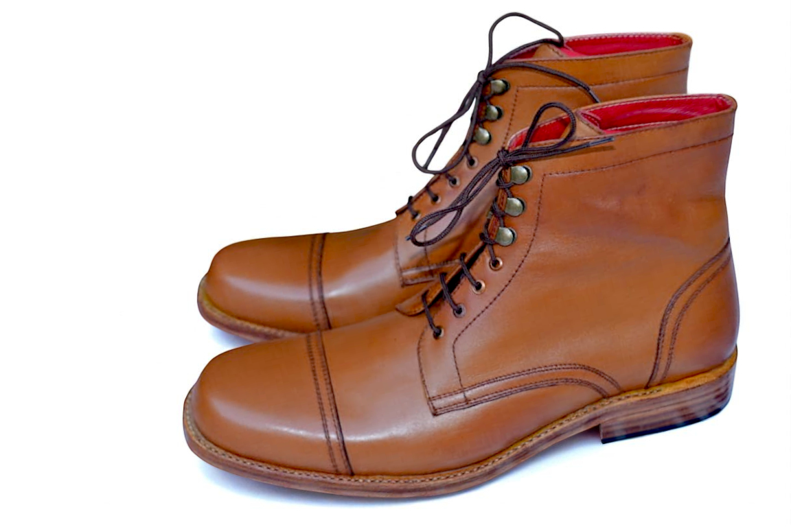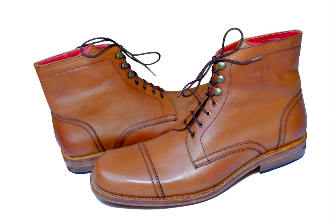 Crafted Leather Classic Brown Leather Ankle High Lace up Dress Boot