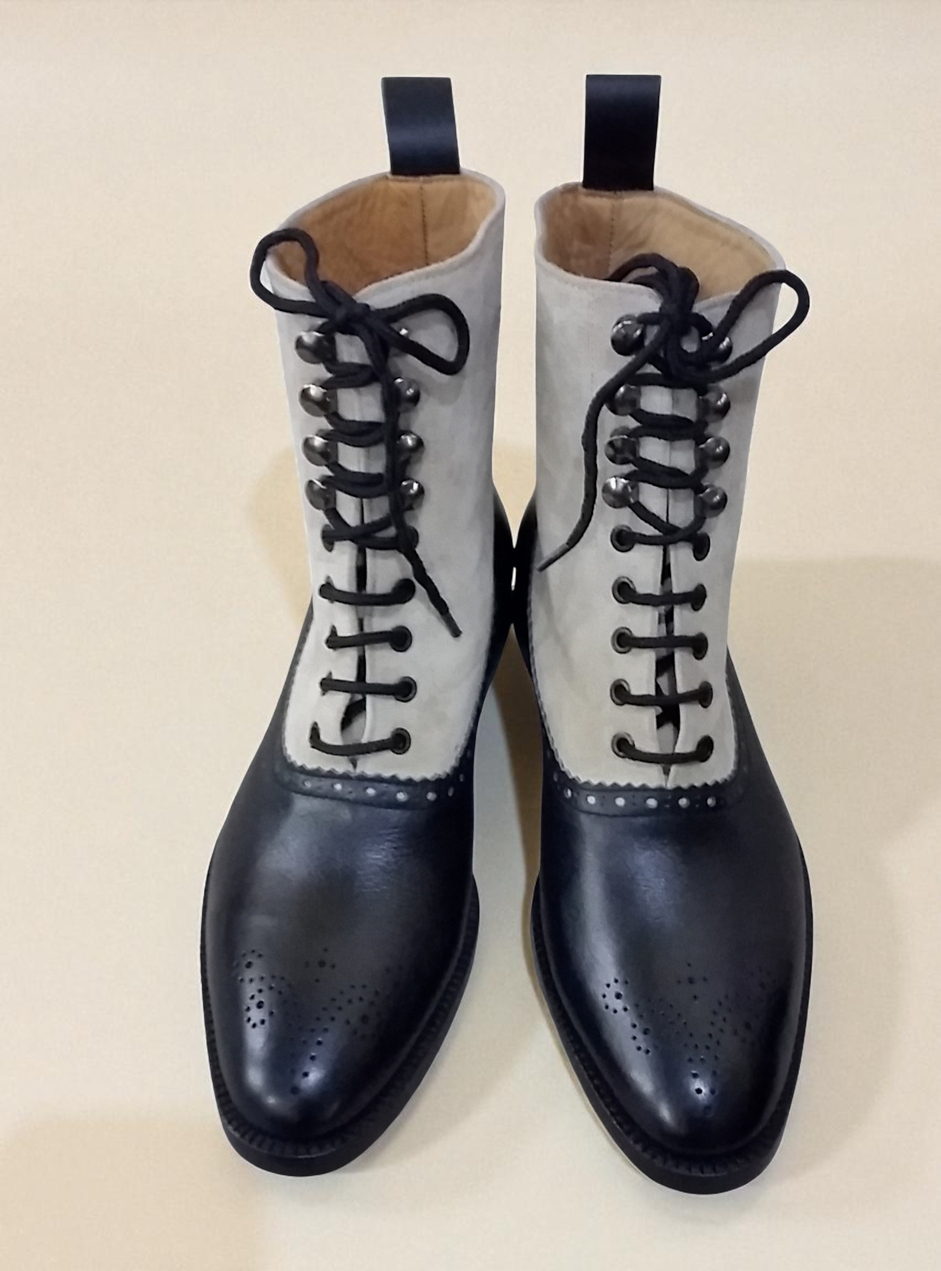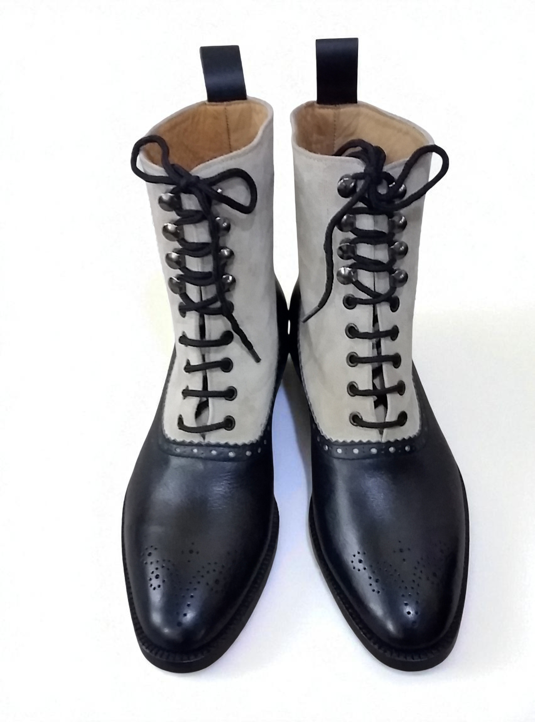 Crafted Leather Classic Men Black/Suede Leather Ankle High Lace up Dress Boot