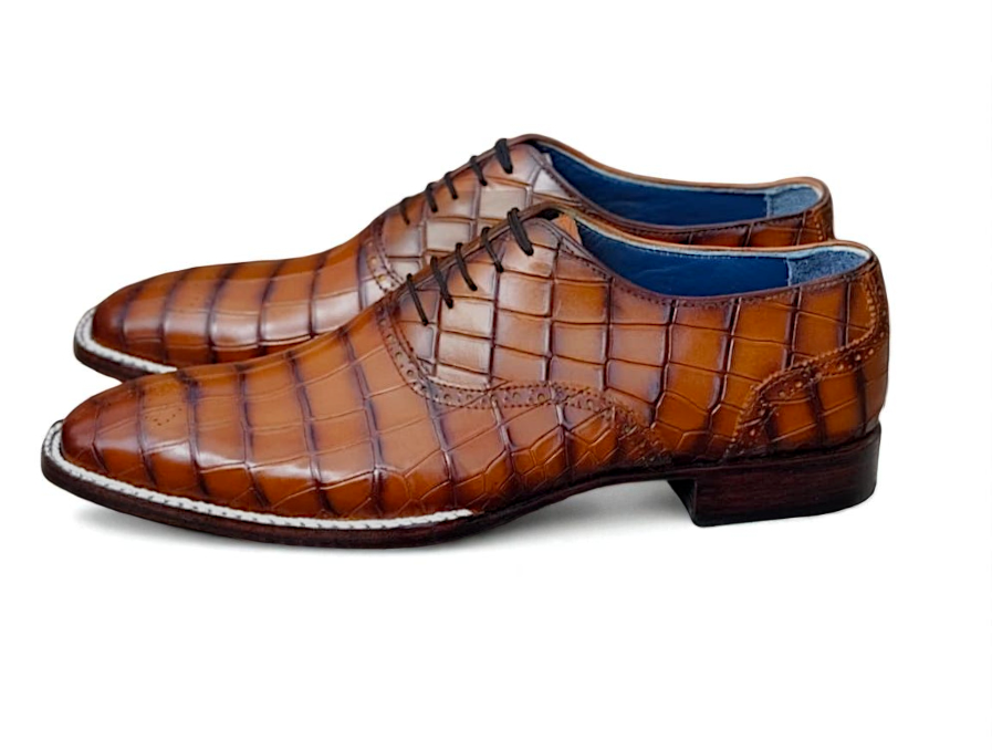 Crafted Leather Men Brown Crocodile/Alligator Leather Norwegian Welted Dress Shoes