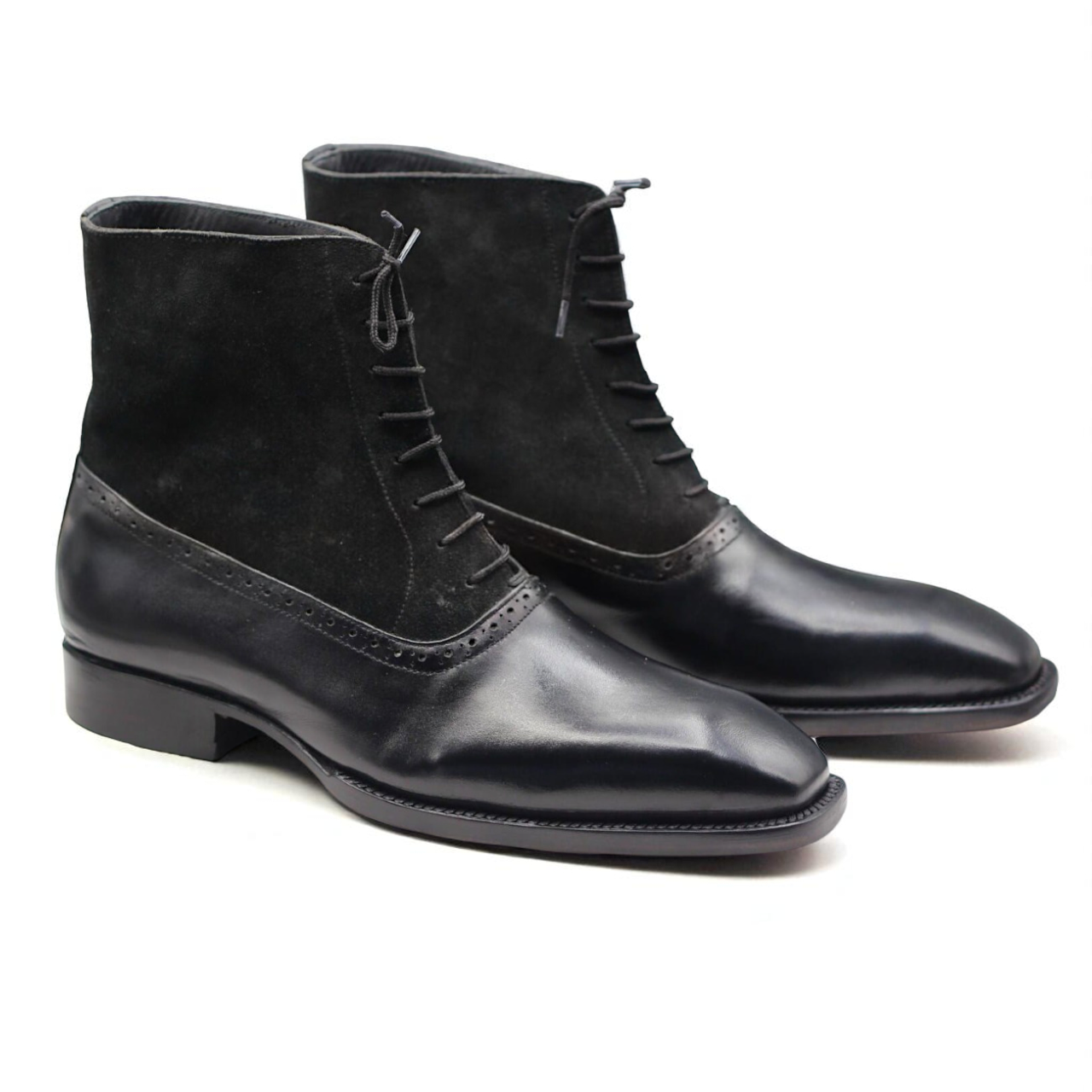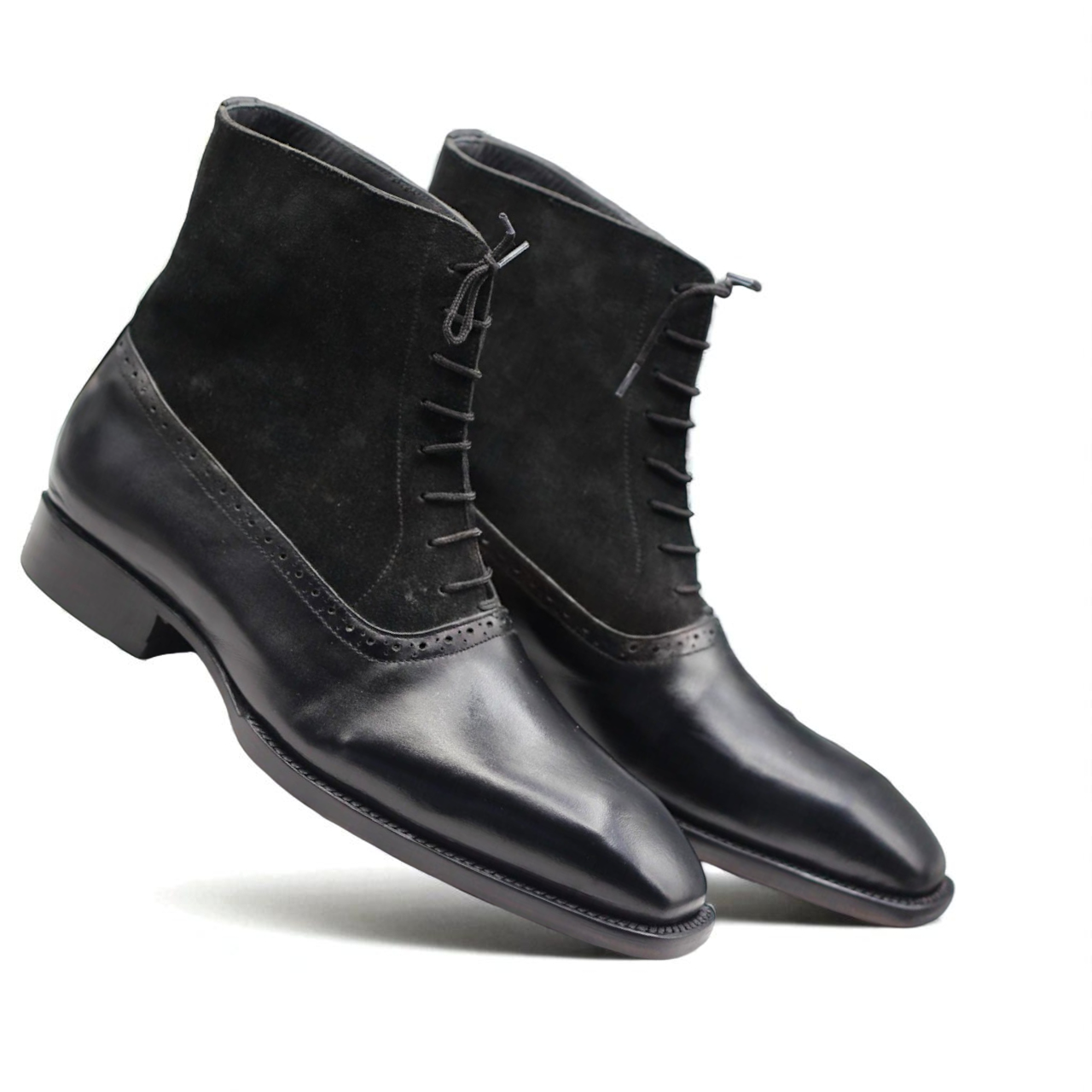 Crafted Leather Classic Men Black/Suede Leather Ankle High Lace up Dress Boot