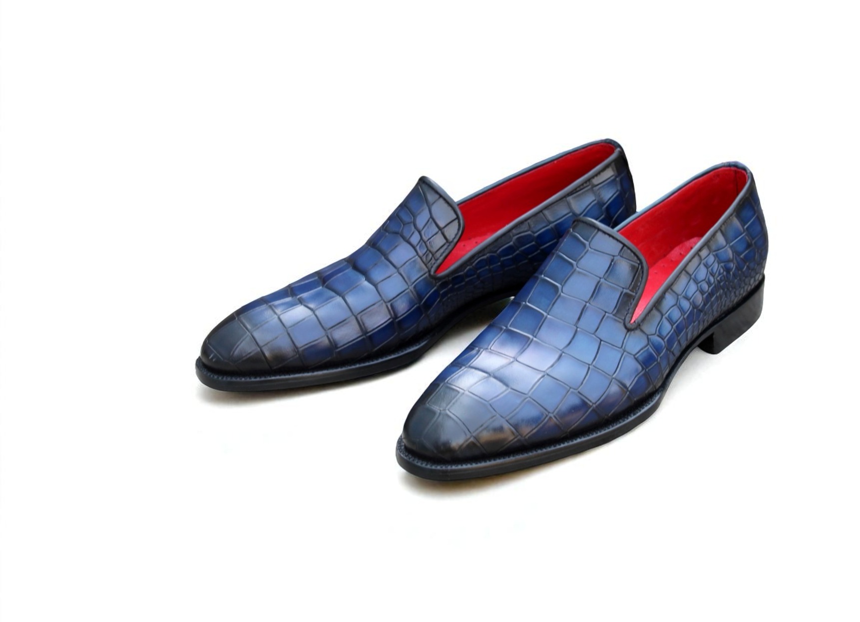 Crafted Leather Classic Blue Crocodile/Alligator Loafers Dress Shoes