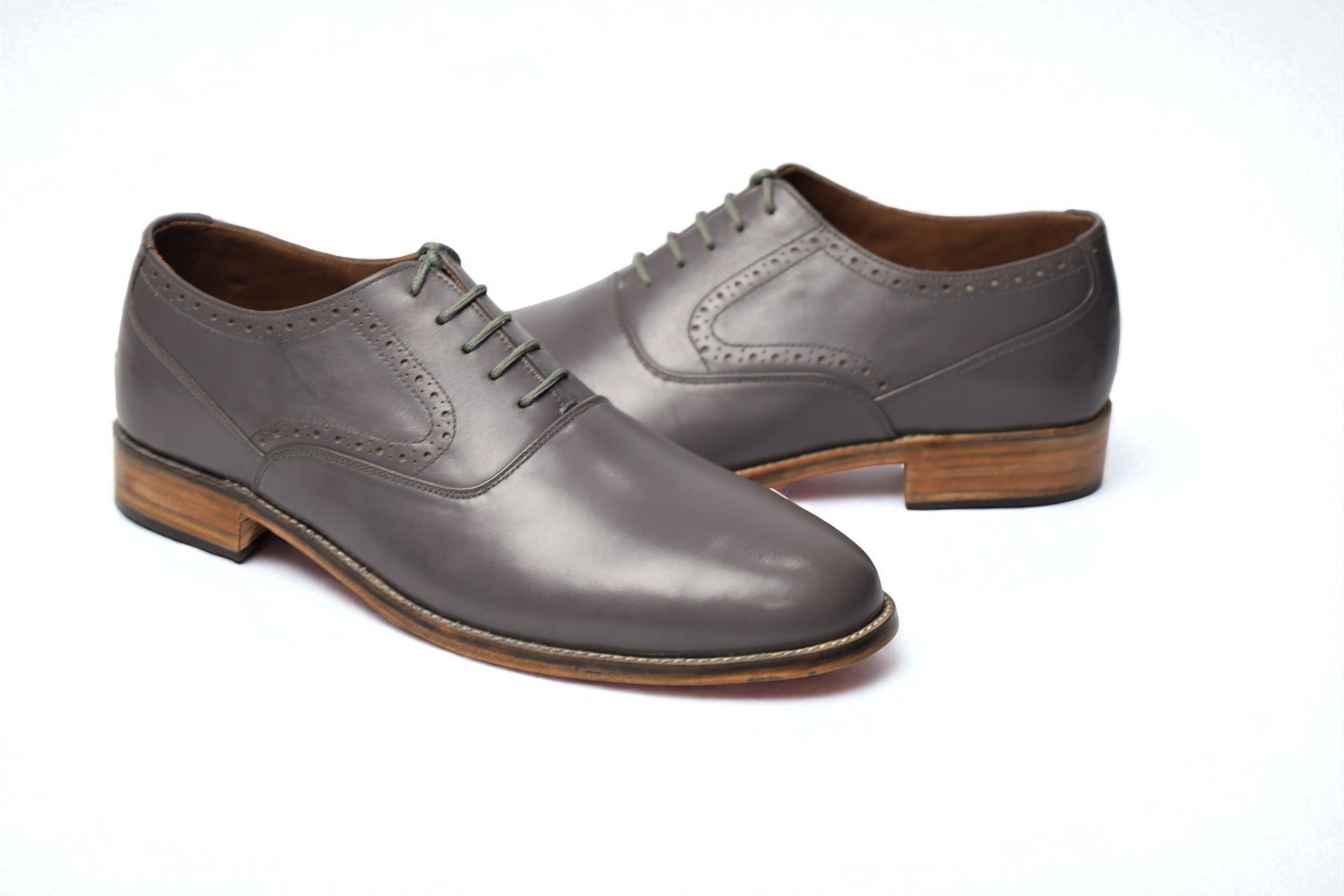 Crafted Leather Classic Gray Leather Oxford Lace up Dress Shoes