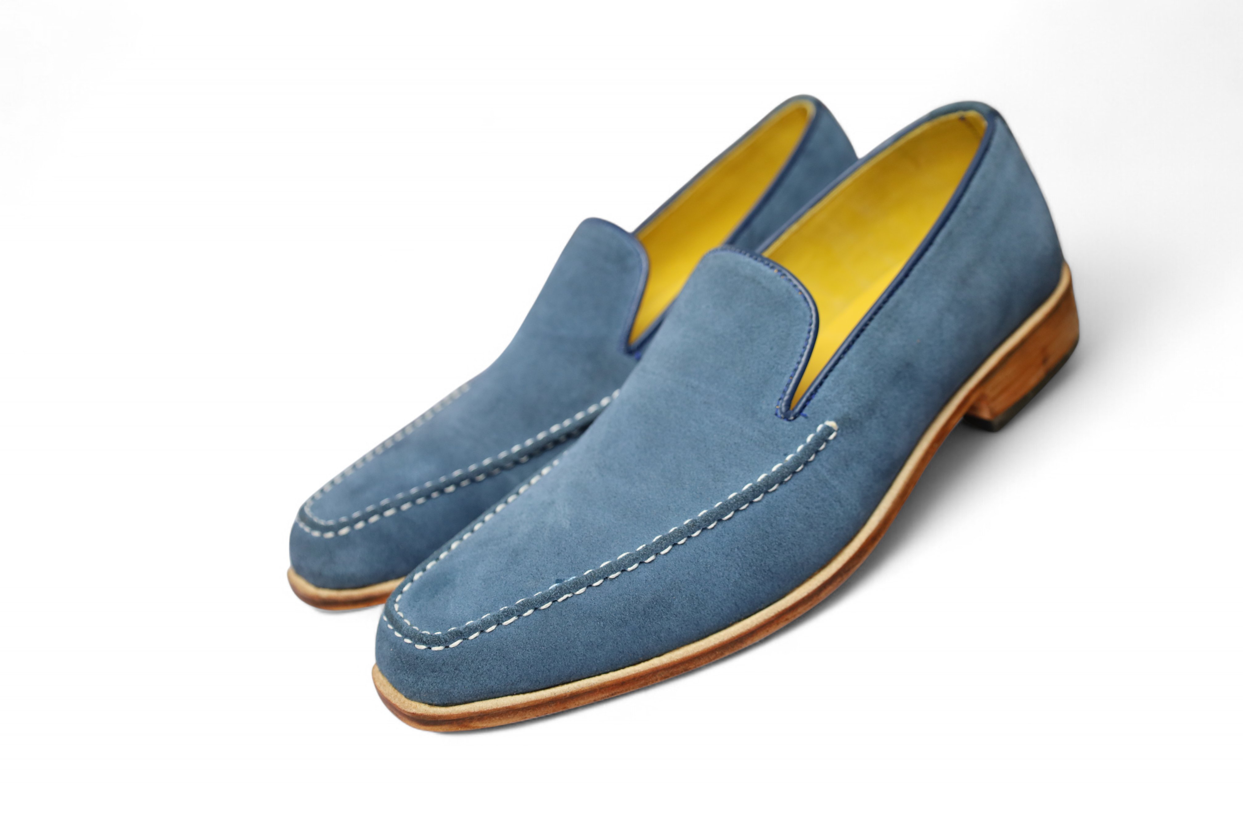 Crafted Leather Classic Blue Suede Leather Moccasin Loafers Dress Shoes
