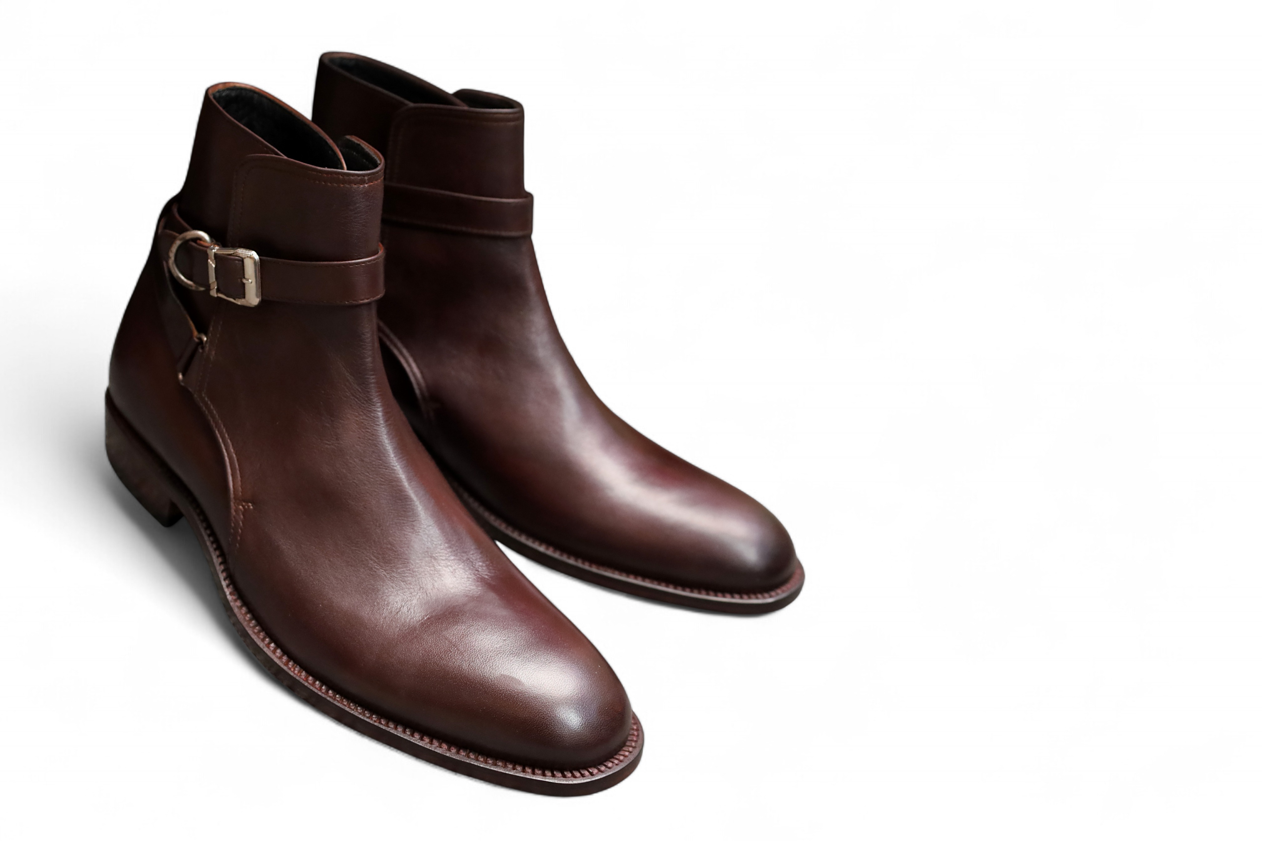Crafted Leather Handmade Brown Leather Buckle Strap Jodhpur Boot