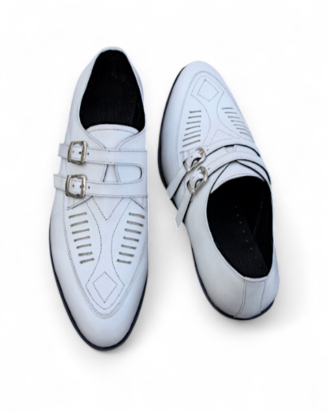 Crafted Leather New Handmade Men's White Leather Duckies Monk Strap Loafer Shoes