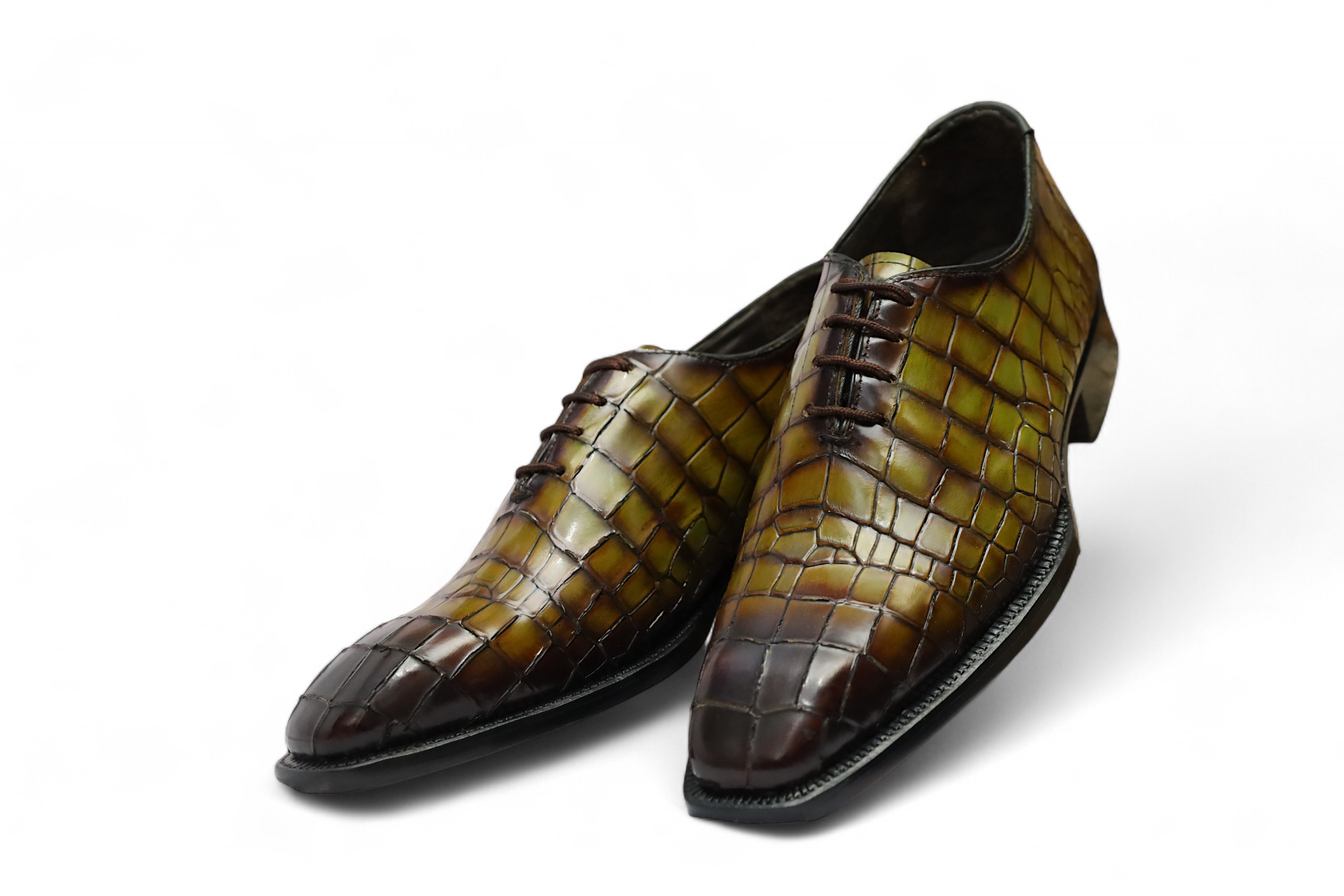 Crafted Leather Classic Green Black Crocodile/Alligator Leather Dress Shoes