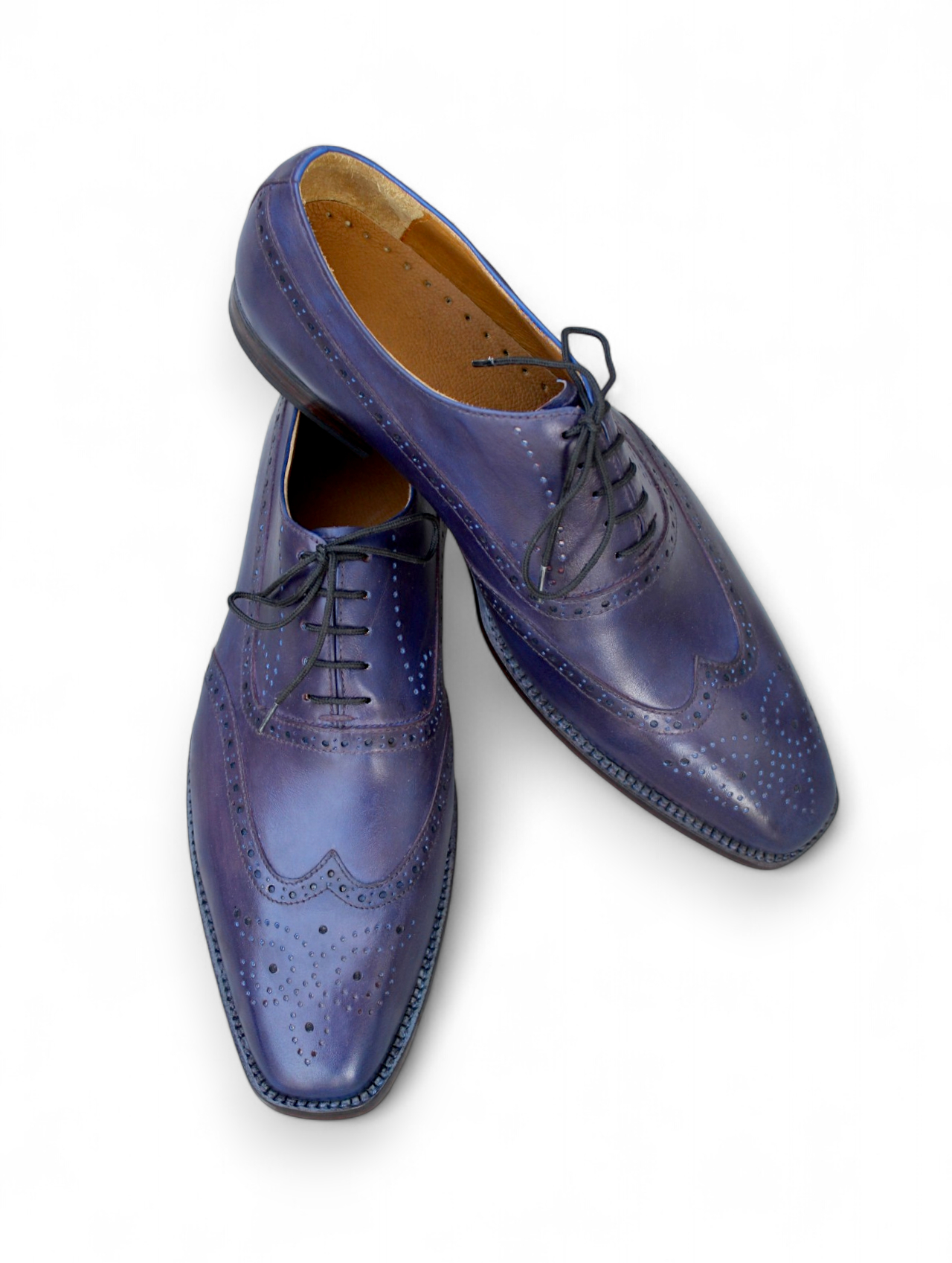 Crafted Leather Classic Purple Leather Wingtip Oxford Dress Shoes