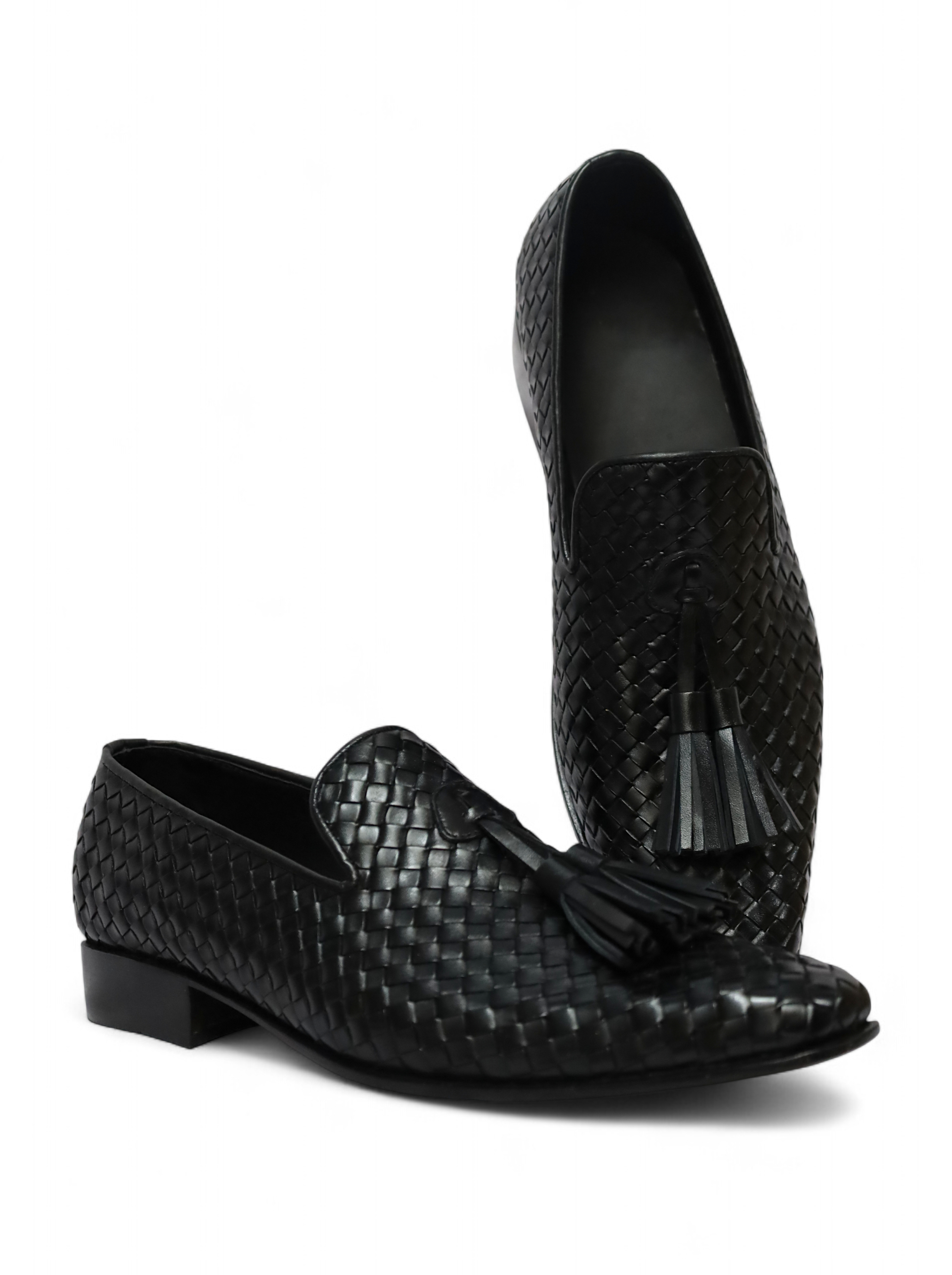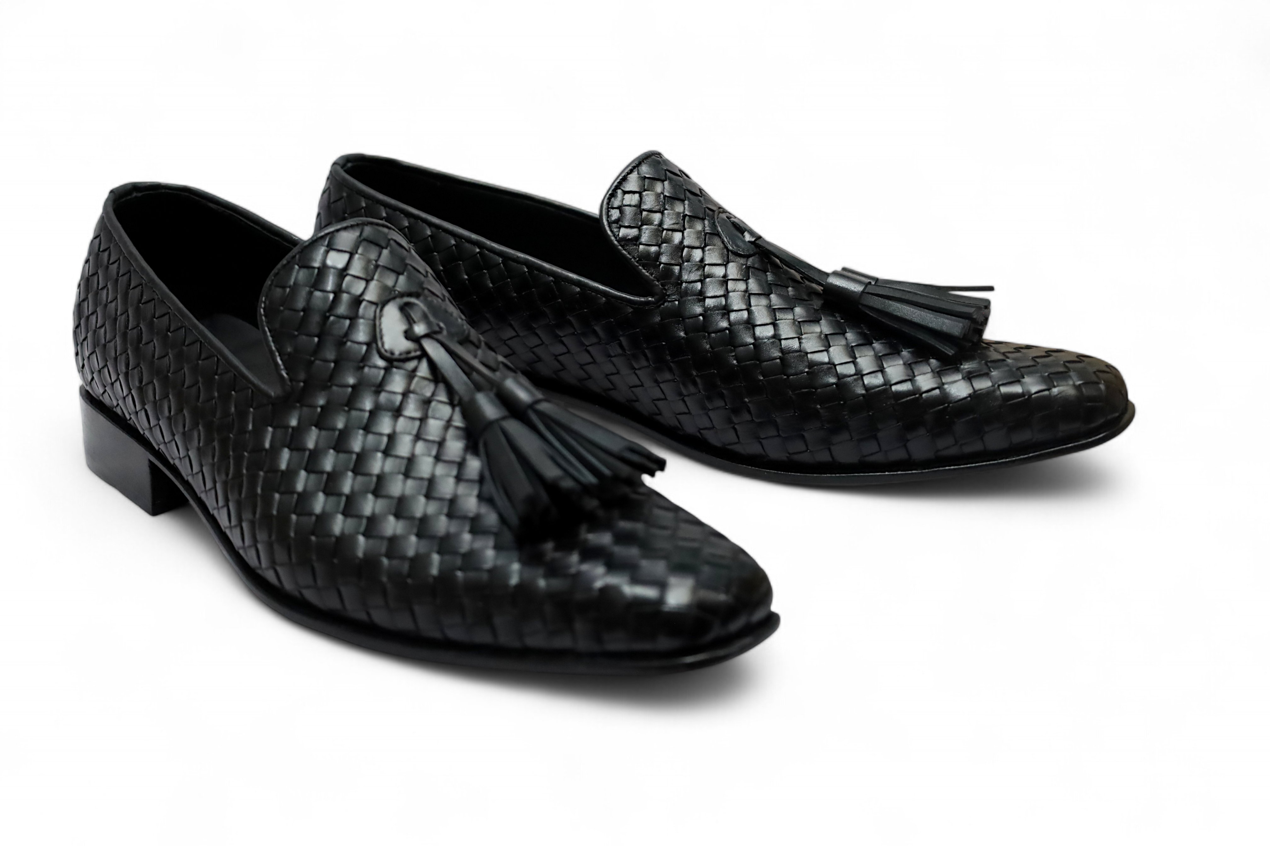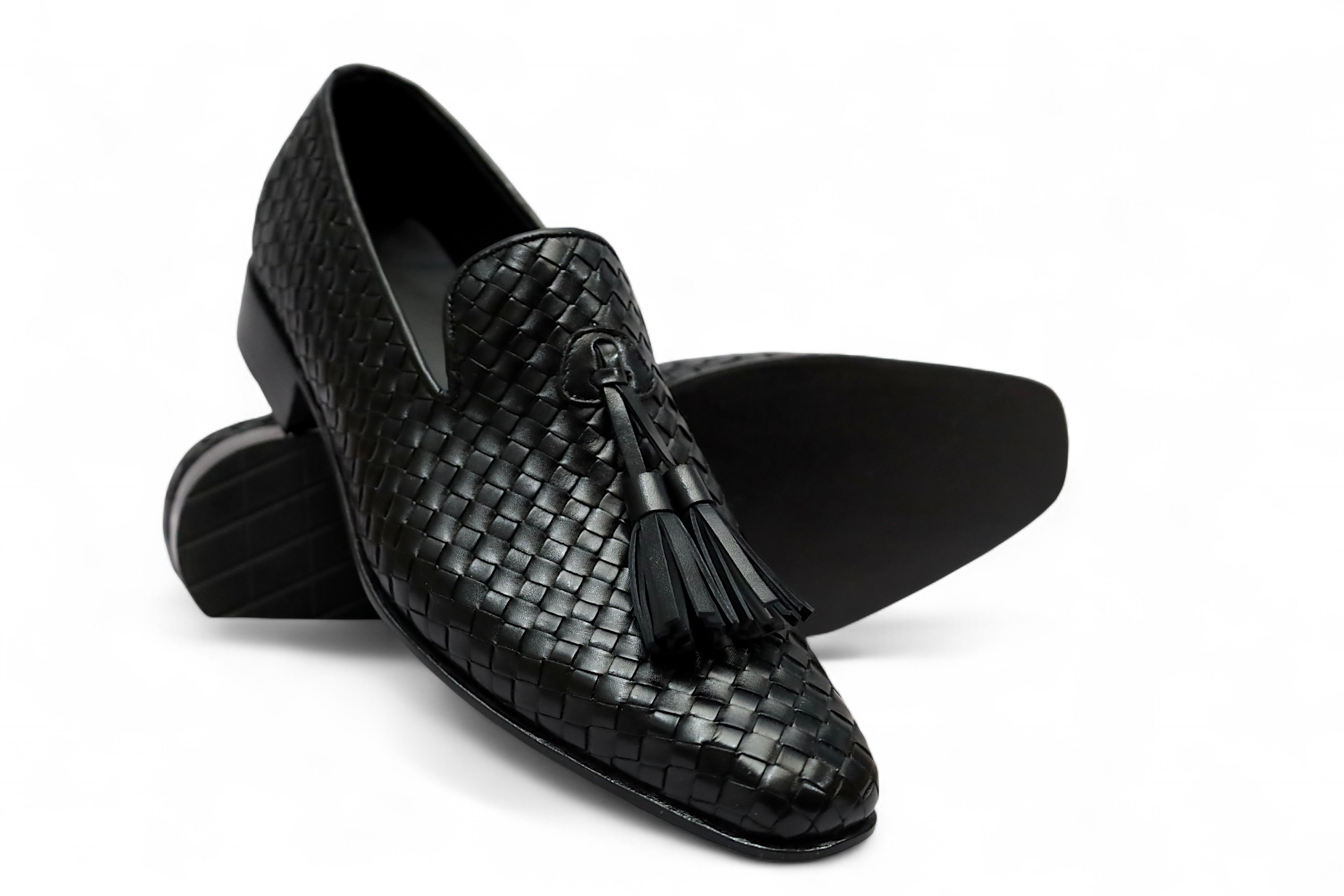 Crafted Leather Men Elegant Classic Black Woven Leather Dress Shoes