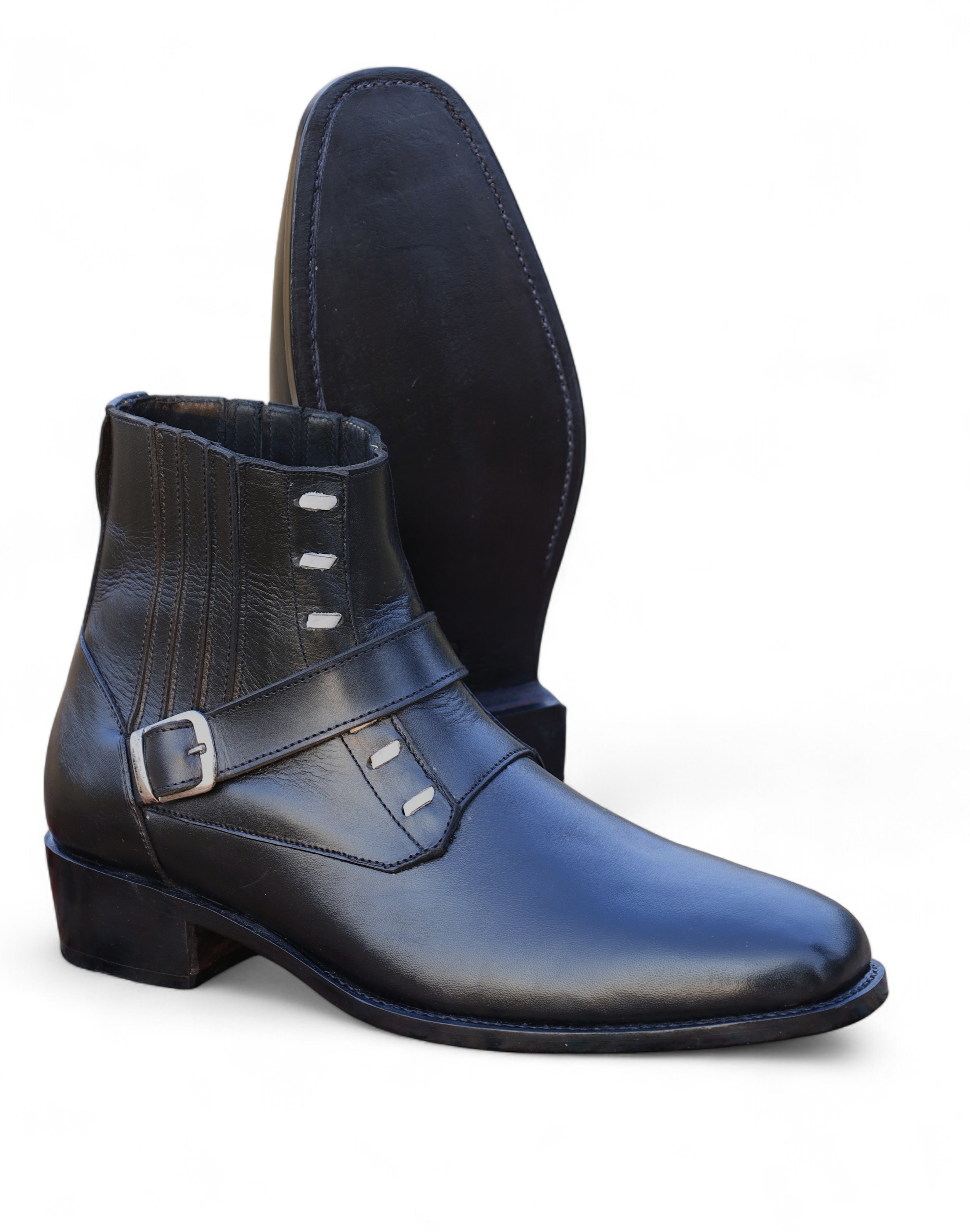 Crafted Leather Classic Black Buckle Strap Leather Jodhpur Boot
