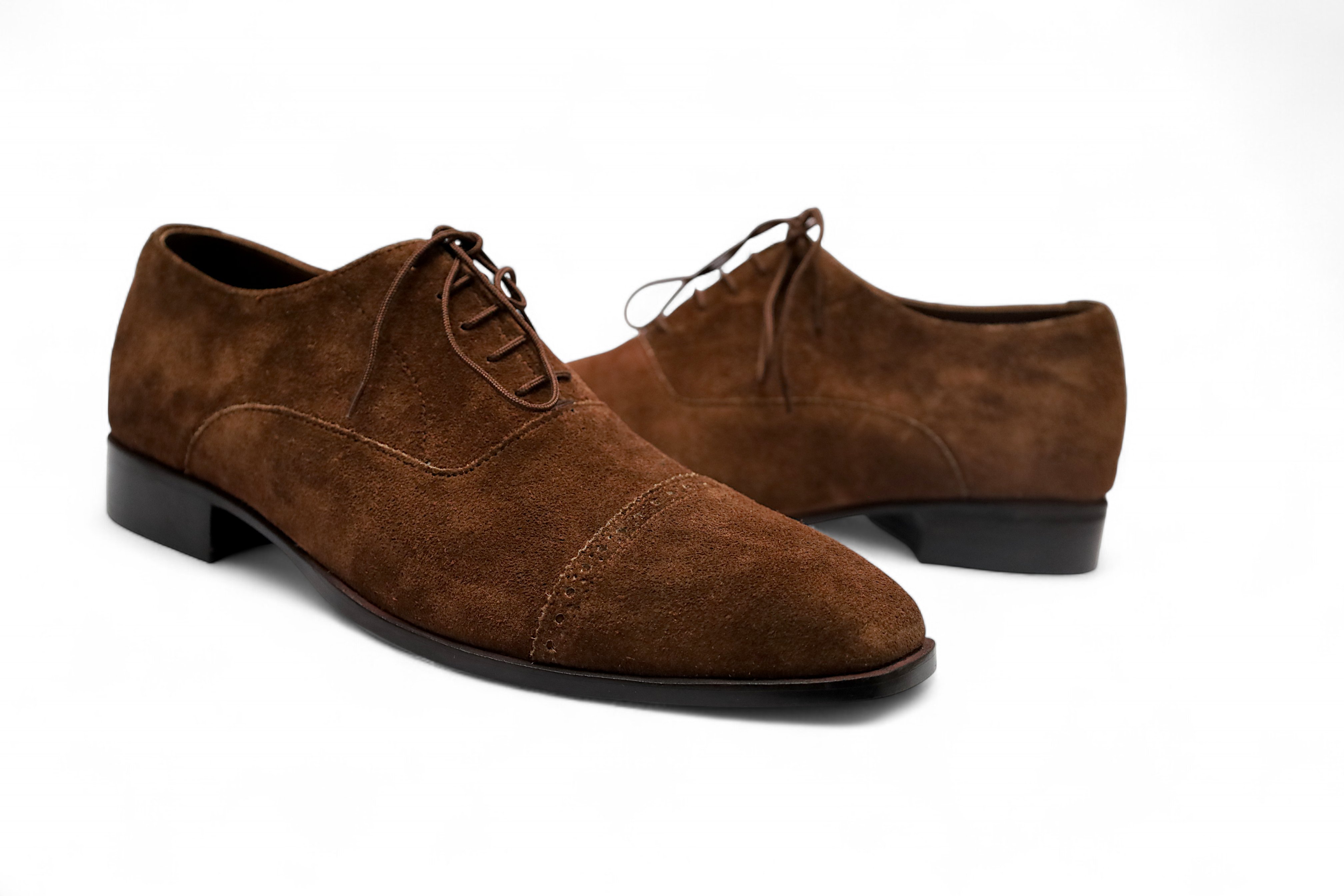 Crafted Leather Classic Brown Suede Leather Oxford Lace up Dress Shoes