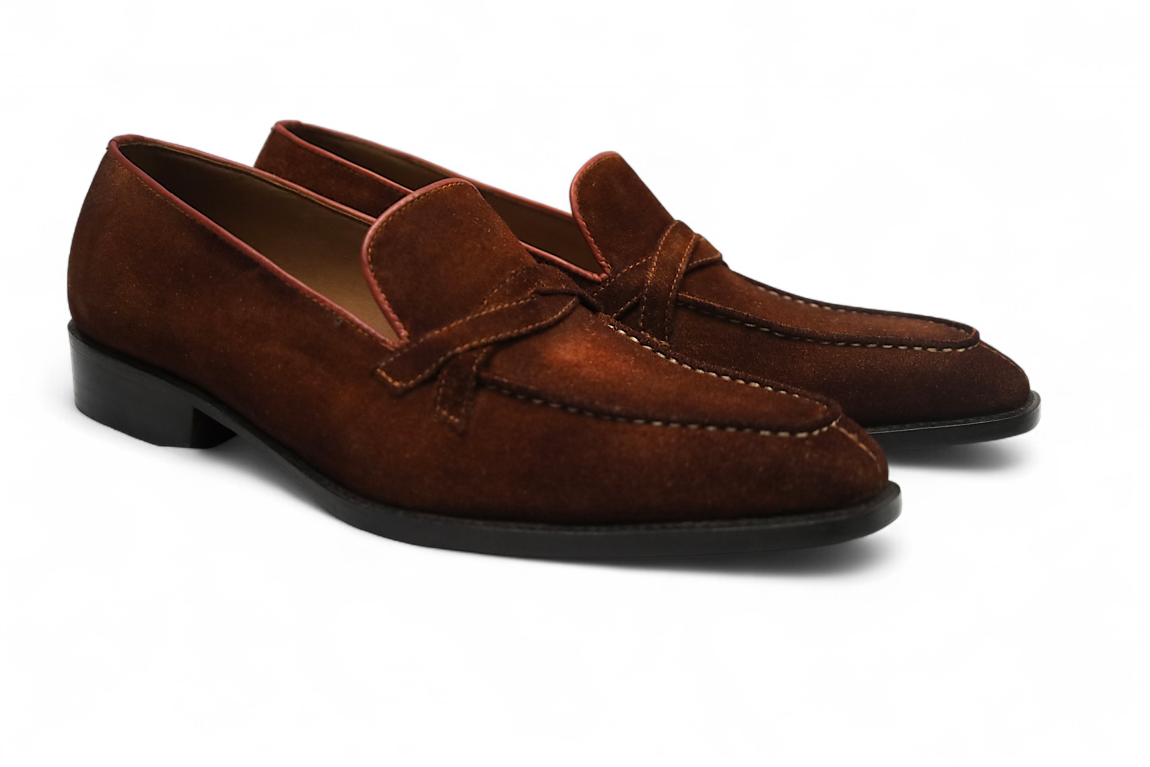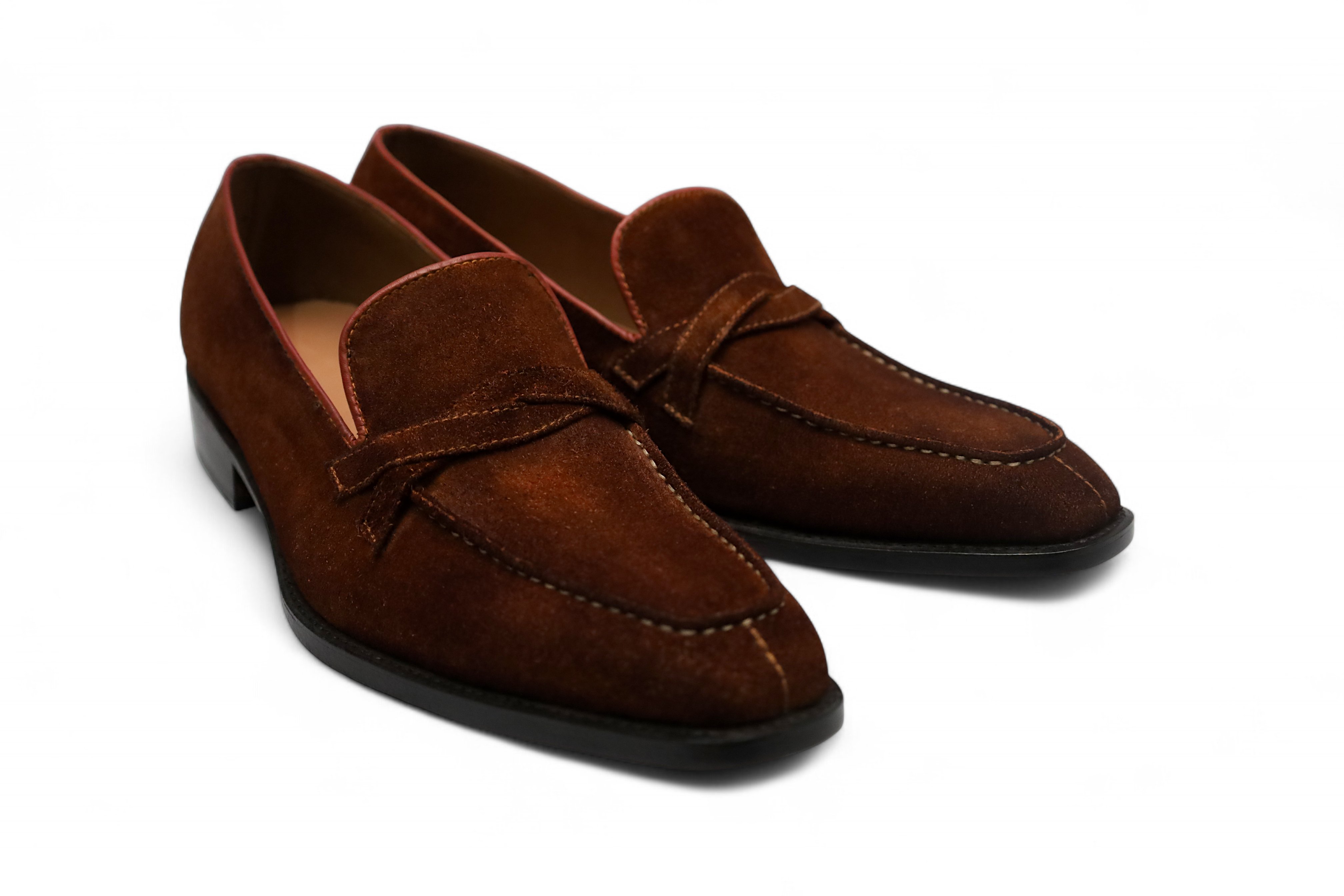 Crafted Leather Men Genuine Brown Suede Leather Moccasin Loafers Dress Shoes