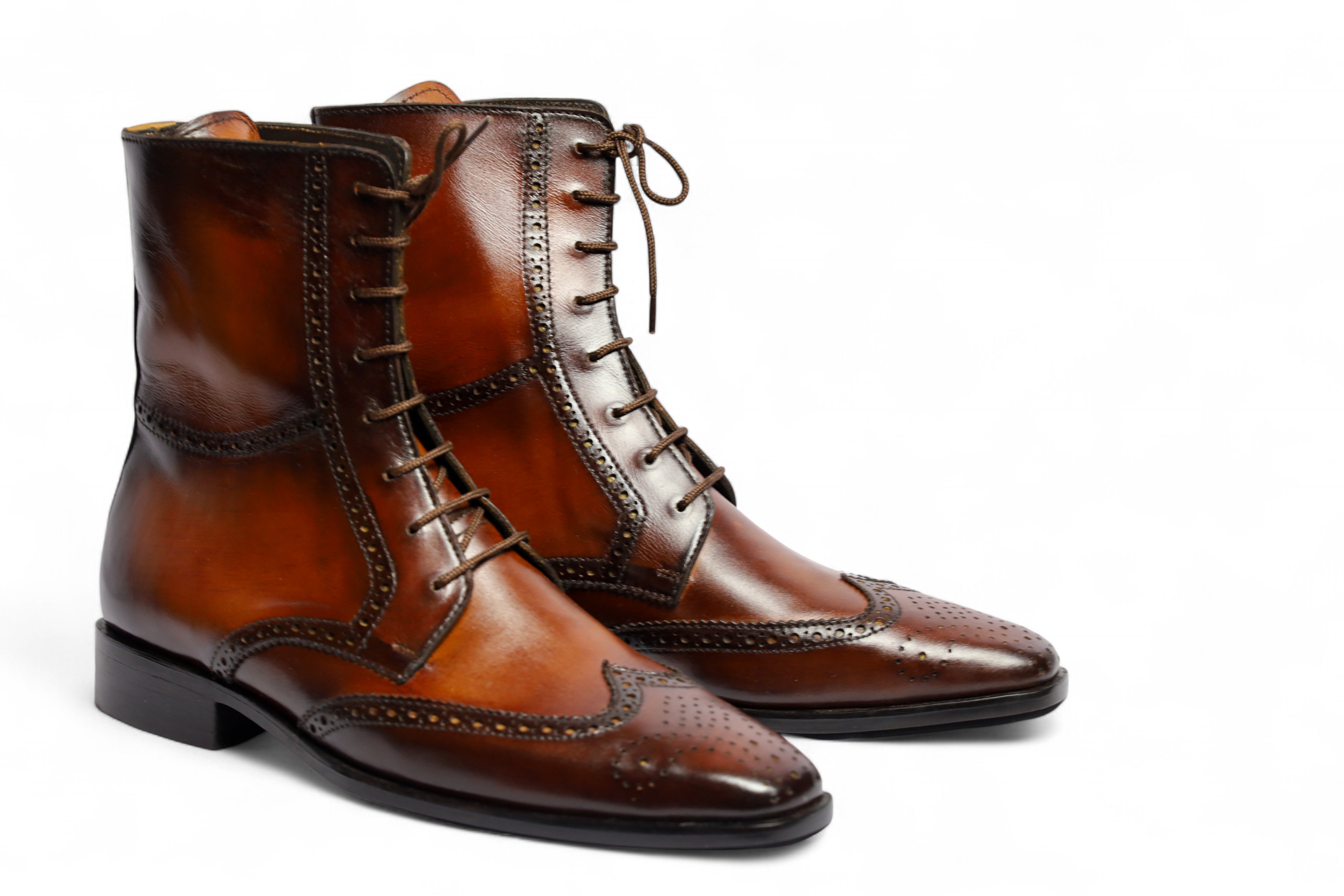 Crafted Leather Classic Men Brown Leather Wingtip Ankle High Lace up Boot