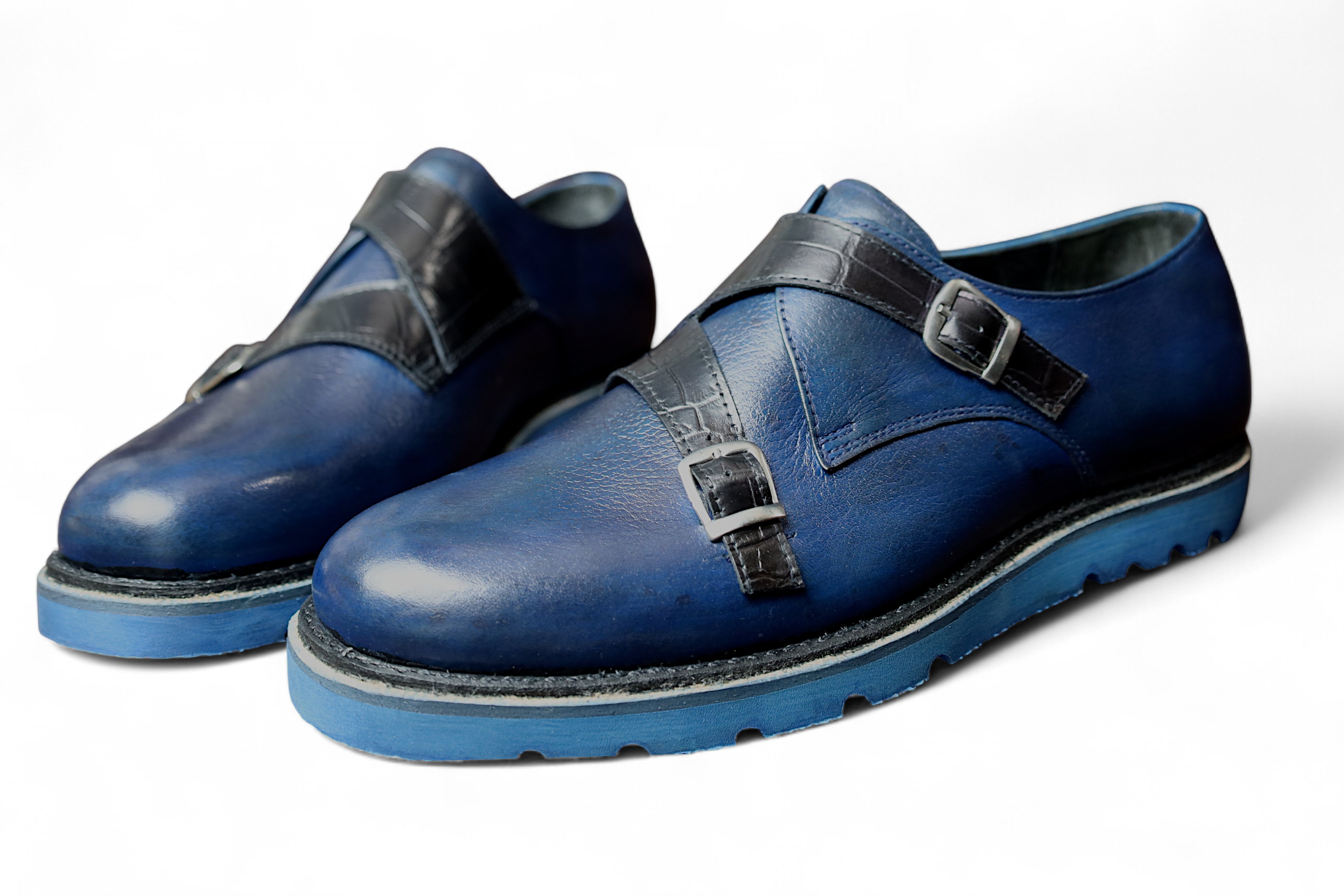 Inner: Soft Leather Sole: Leather Gender : Male Heel: Leather Color: Blue Style: Monk Strap Dress Shoes Lining Soft Calf Leather Lining Totally Hand stitched Manufacturing time 7-10 business days If you can’t find your Size/Colorjust send us message we will make for you.