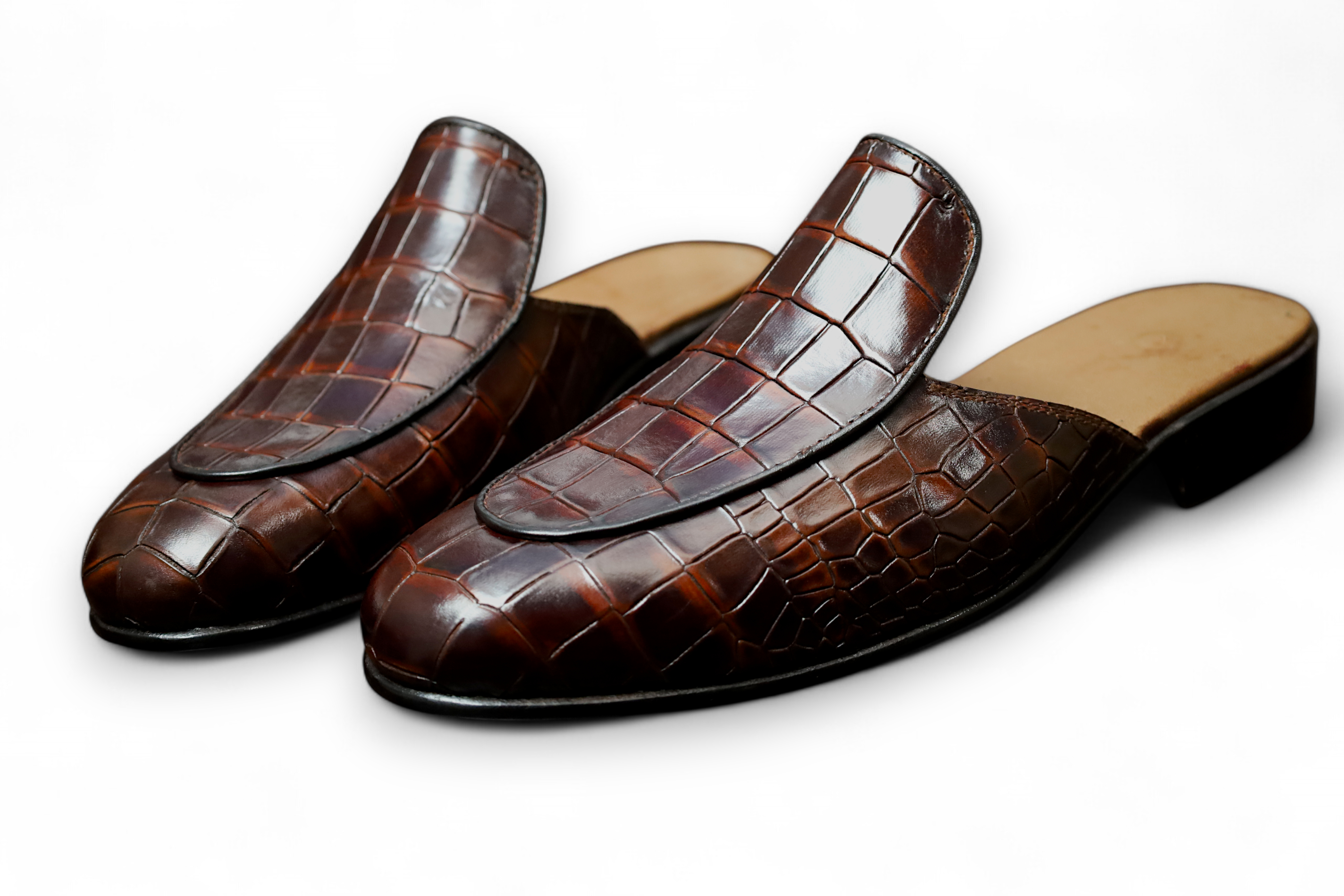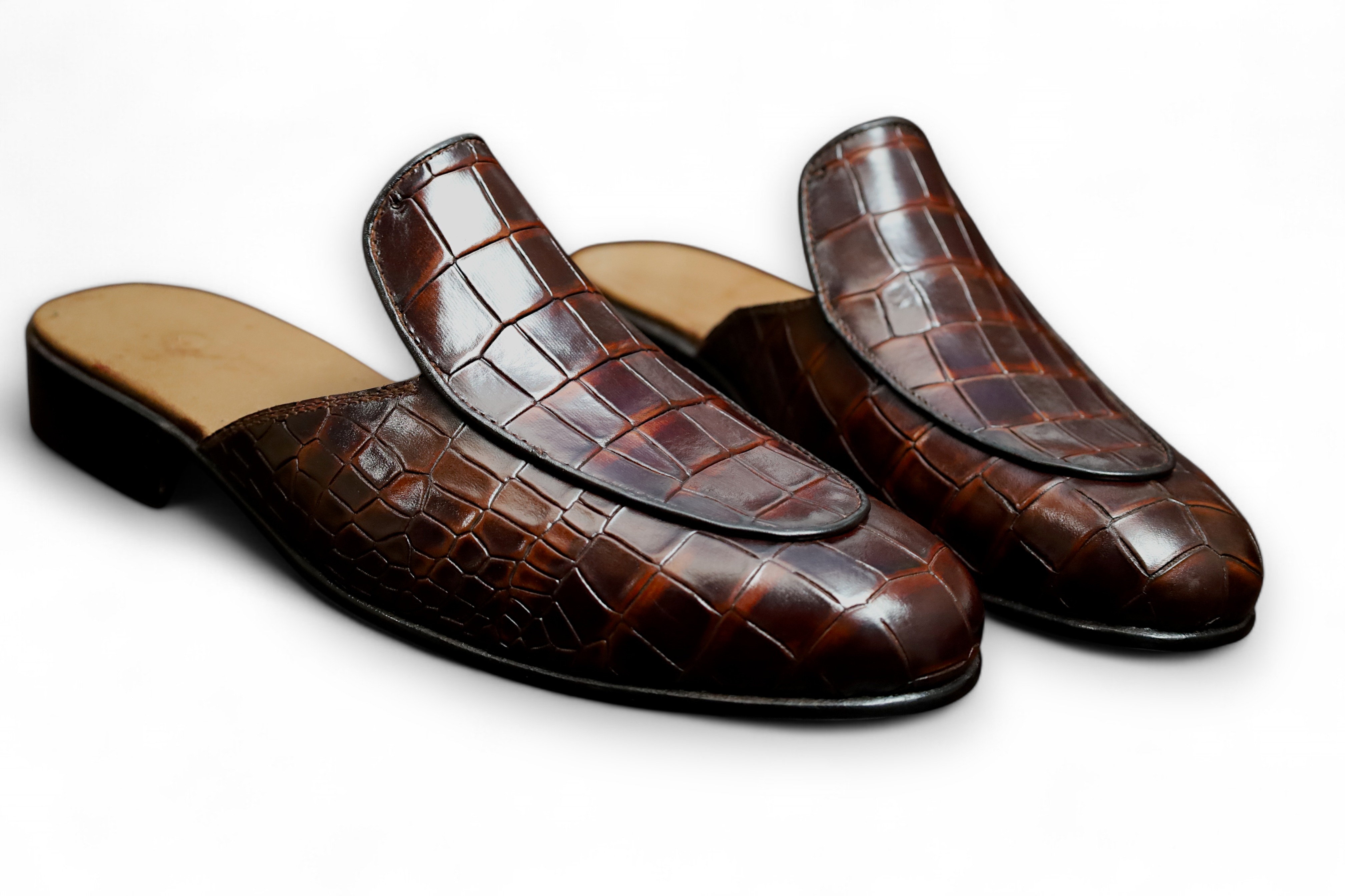 Crafted Leather Handmade Men Dress Shoes Classic Brown Crocodile Leather Alligator Mules