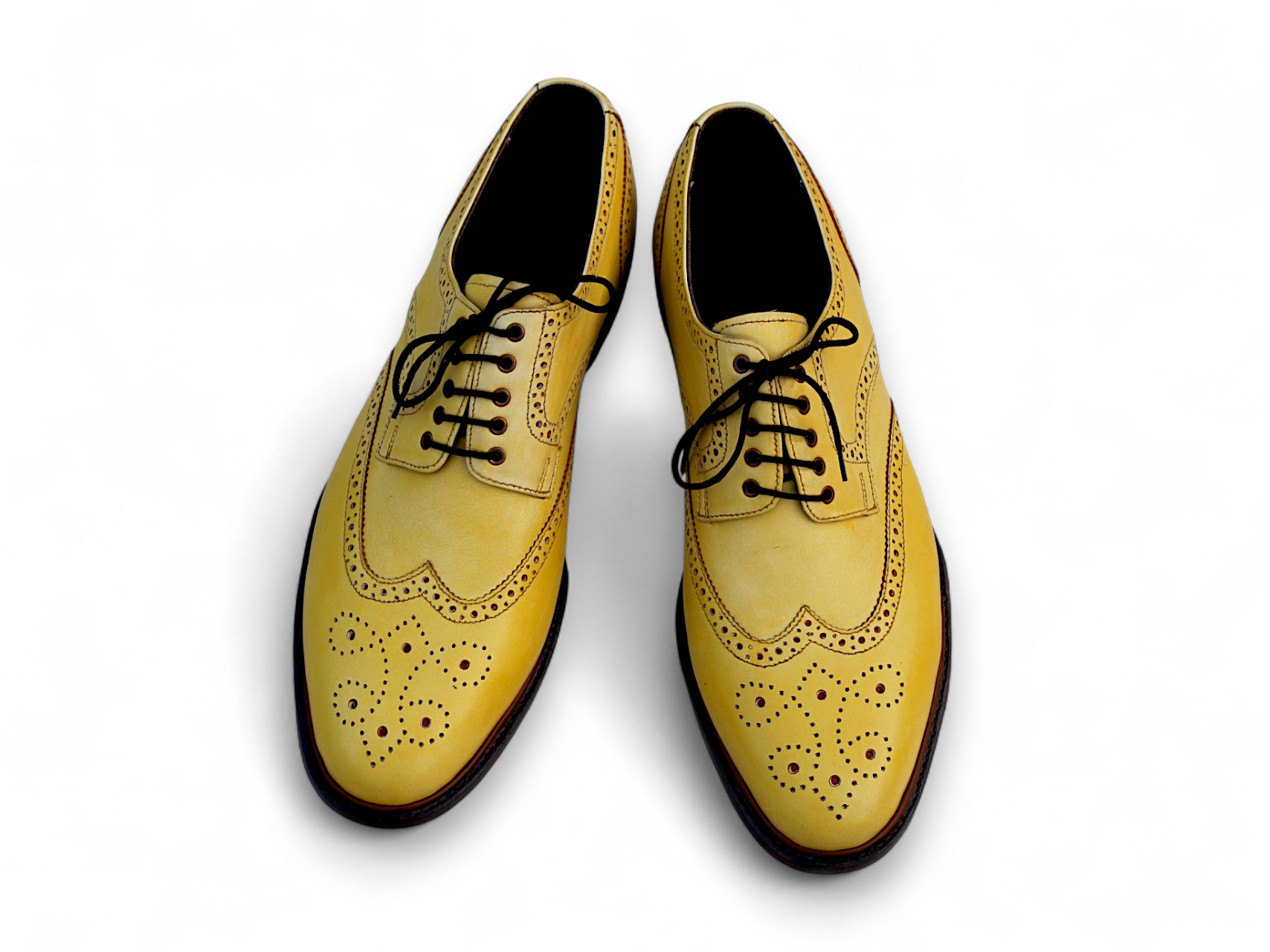 Crafted Leather Elegant Yellow Wingtip Oxford Dress Shoes