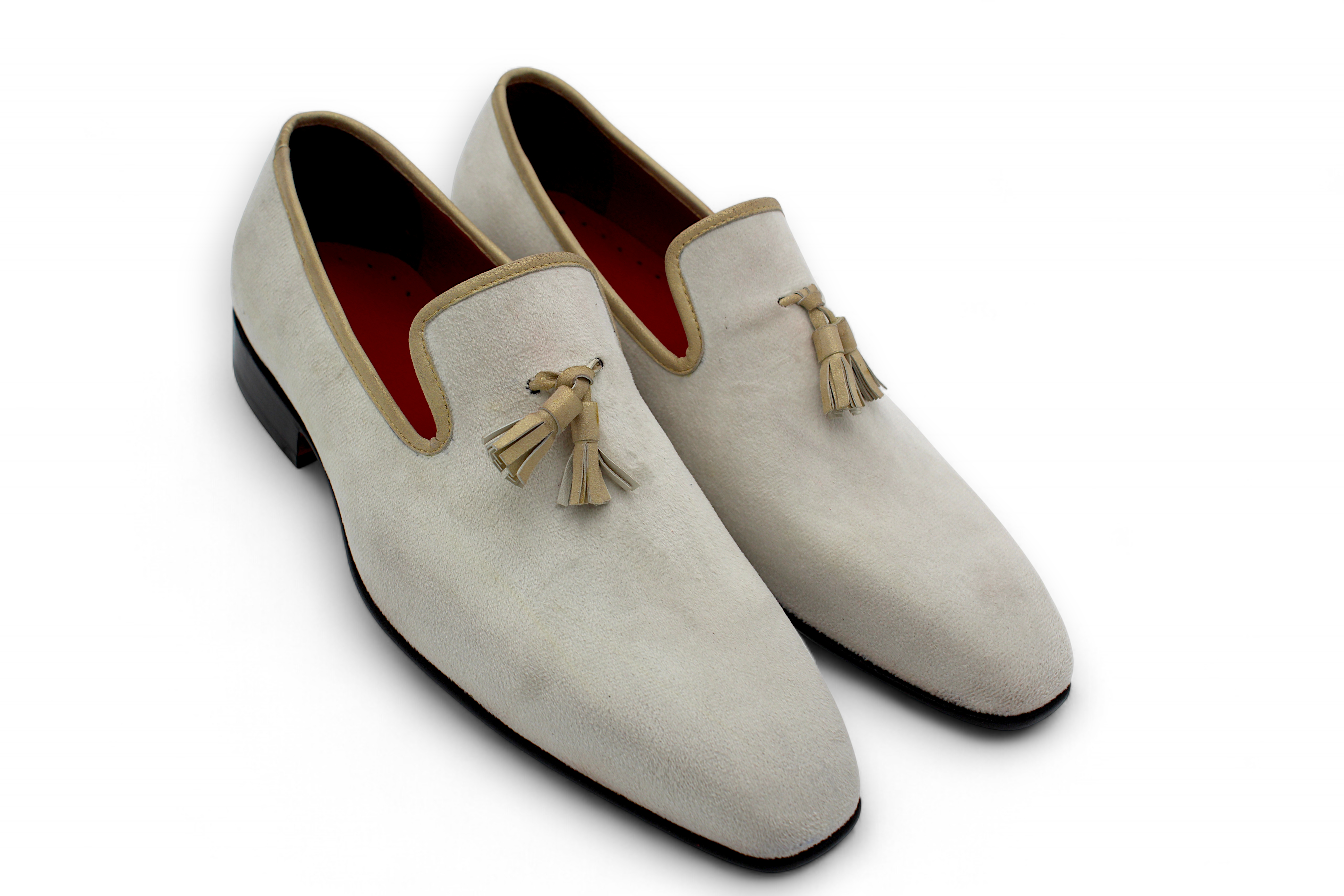 Crafted Leather Classic Men White Suede Leather Tassel Loafers Dress Shoes