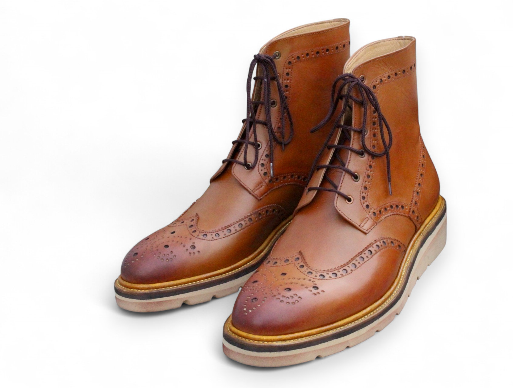 Crafted Leather Classic Men Brown Leather Ankle High Lace up Wingtip Balmoral Dress Boot