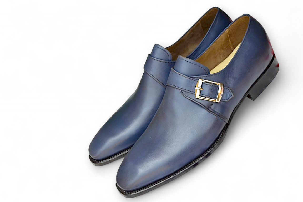Inner: Soft Leather Sole: Leather Gender : Male Heel: Leather Color: Blue Style: Monk Shoes Lining Soft Calf Leather Lining Totally Hand stitched Manufacturing time 7-10 business days If you can’t find your Size/Colorjust send us message we will make for you.