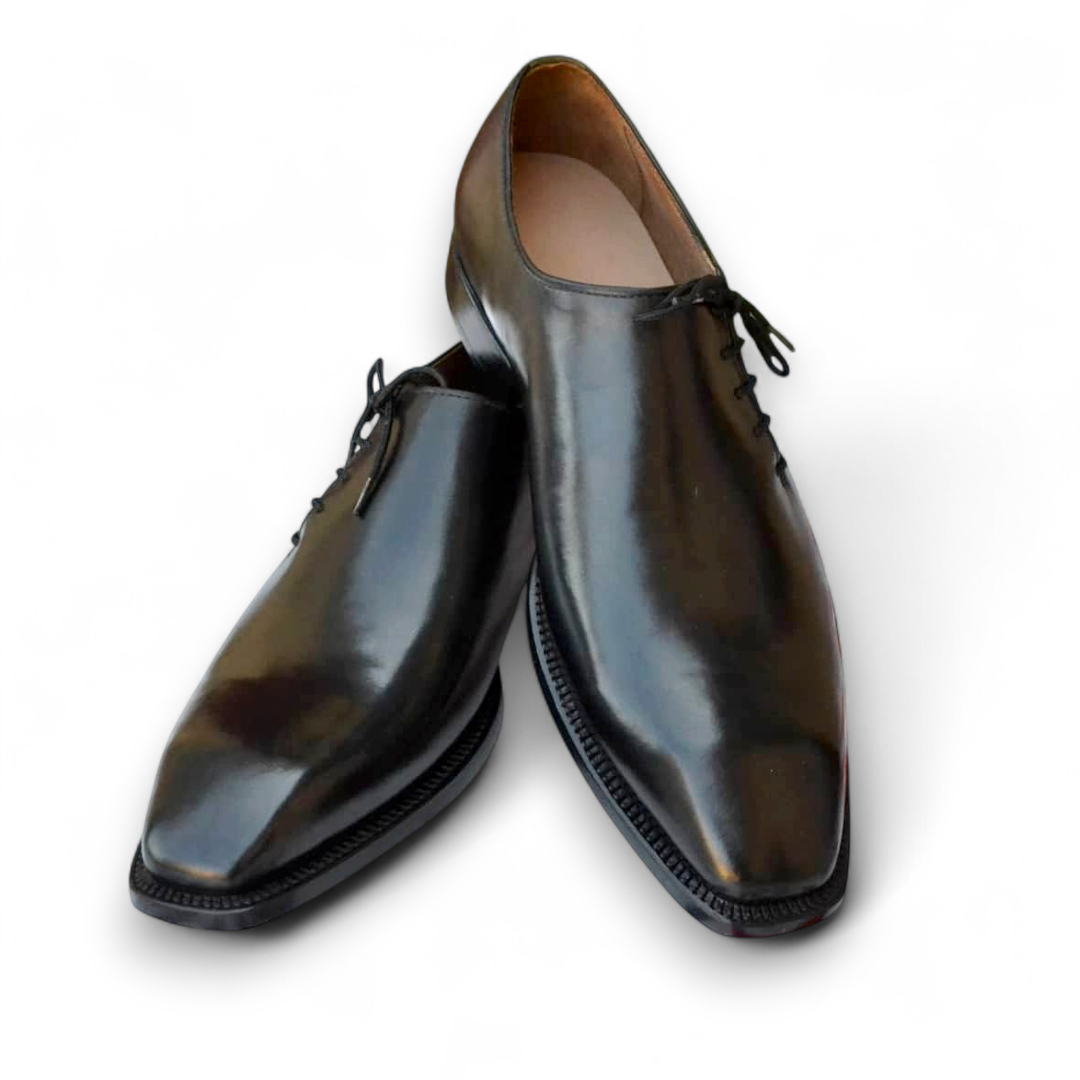 Crafted Leather Men Black Classic Side Laces Oxford Dress Shoes