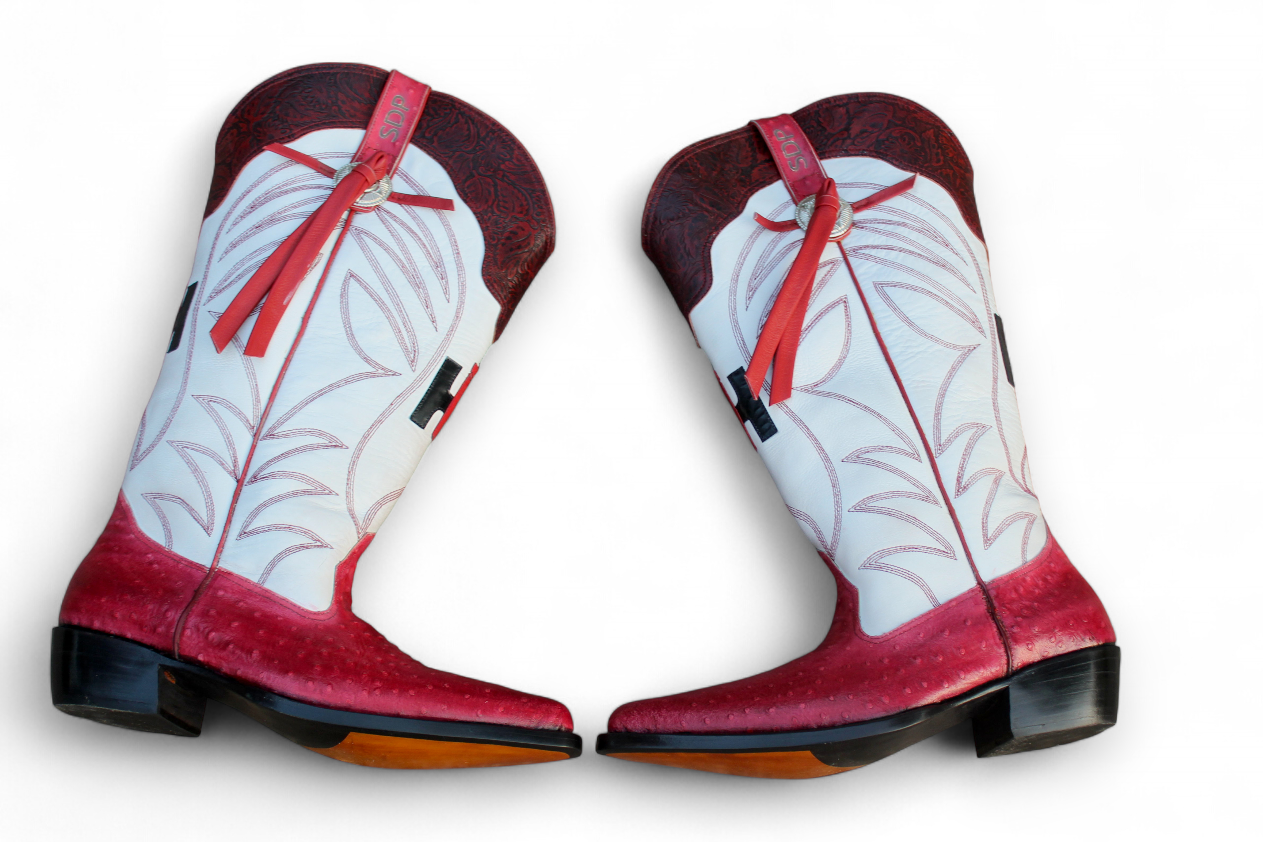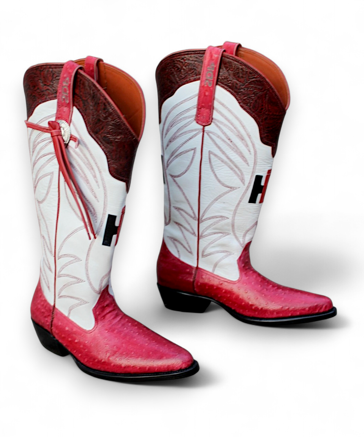 Crafted Leather New Handmade Pink Ostrich White Leather Designer Long Ankle High Cowboy Boot