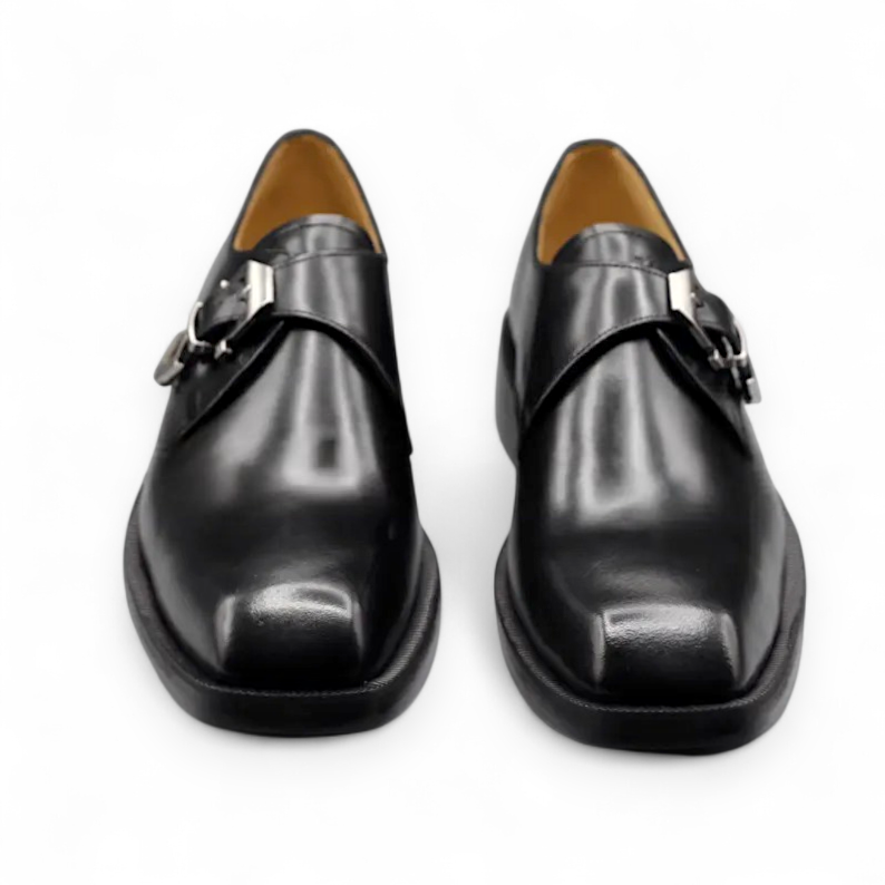 Crafted Leather Handmade Black Leather Monk Strap Dress Shoes