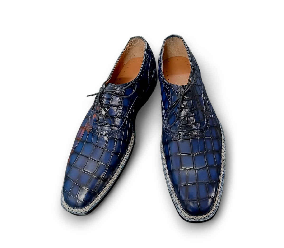 Crafted Leather Classic Handmade Men Norwegian Welted Blue Crocodile Lace up Alligator Dress Shoes